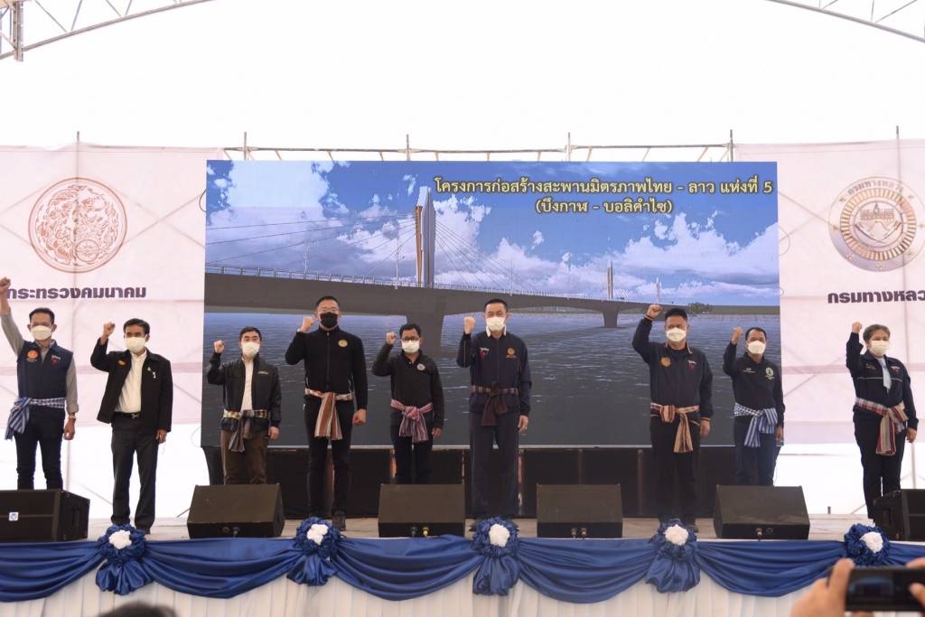 1. โครงการก่อสร้างสะพานมิตรภาพไทย - ลาว แห่งที่ 5 (บึงกาฬ - บอลิคำไซ) พร้อมโครงข่าย เป็นการพัฒนาโครงข่ายทางหลวงเชื่อมโยงกับประเทศเพื่อนบ้าน ภายใต้กรอบความร่วมมือทางเศรษฐกิจในอนุภูมิภาคลุ่มแม่น้ำโขง (Greater Mekong Subregion: GMS) ซึ่งดำเนินการโดย สำนักบริหารโครงการทางหลวงระหว่างประเทศ ทล. รวมระยะทาง 16.18 กิโลเมตร แบ่งเป็นถนนฝั่งไทย ระยะทาง 13 กิโลเมตร และถนนฝั่ง สปป.ลาว ระยะทาง 3.18 กิโลเมตร การออกแบบโครงสร้างได้นำเสาหลักของสะพาน (Pylon) มาประยุกต์ระหว่างโครงสร้างกับ “แคน” ซึ่งเป็นเครื่องดนตรีท้องถิ่น เพื่อแสดงถึงวัฒนธรรมของชุมชนในภูมิภาคลุ่มแม่น้ำโขง