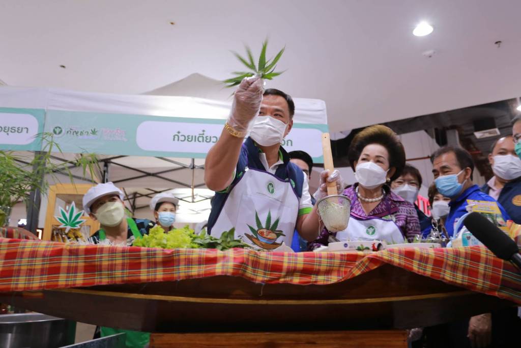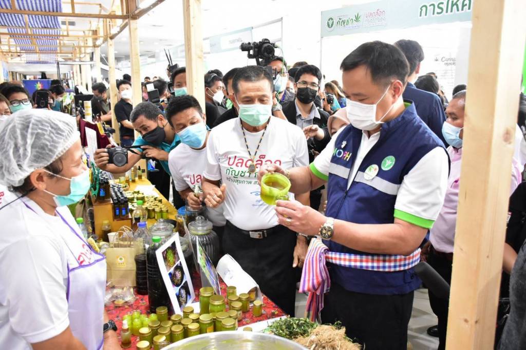 และสาธิตการทำยาหม่องกัญชา จากโรงพยาบาลเสนา และวิสาหกิจชุมชนคลองห้า คลองหลวง ท่ามกลางความสนใจของประชาชนจำนวนมาก