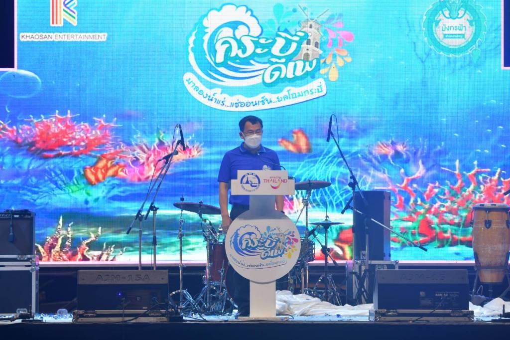 รมว.พิพัฒน์ กล่าวว่า “จังหวัดกระบี่เป็นหนึ่งในกลุ่มจังหวัดภาคใต้ฝั่งอันดามัน ที่มีศักยภาพการท่องเที่ยวในระดับประเทศและระดับนานาชาติ มีแหล่งท่องเที่ยวที่หลากหลาย โดยเฉพาะอย่างยิ่งแหล่งท่องเที่ยวทางทะเล ซึ่งเป็นแหล่งท่องเที่ยวกระแสหลัก และยังมีแหล่งท่องเที่ยวแนวแอดเวนเจอร์ มุดถ้ำ ดำน้ำ ขึ้นเขา แช่ออนเซน จังหวัดกระบี่สามารถสร้างรายได้จากการท่องเที่ยวได้เป็นอันดับต้นของประเทศ แต่จากสถานการณ์แพร่ระบาดของโควิด-19 ซึ่งส่งผลกระทบต่อภาคการท่องเที่ยวทั่วโลก รวมถึงประเทศไทย ทำให้จำนวนนักท่องเที่ยวและรายได้จากการท่องเที่ยว ของประเทศลดลงอย่างมาก กระทรวงการท่องเที่ยวและกีฬาได้พยายามทุกวิถีทางในการแก้ปัญหาและออกมาตรการต่างๆ เพื่อกระตุ้นการท่องเที่ยว พยุงเศรษฐกิจของประเทศ และสร้างรายได้ให้กับประชาชนซึ่งผมคงต้องขอชื่นชมจังหวัดกระบี่ ที่ทุกภาคส่วนร่วมกันพัฒนาและส่งเสริมการท่องเที่ยวในทุกด้าน เพื่อฝ้าฟันวิกฤตเศรษฐกิจอันเกิดจากผลกระทบของโควิด-19 ทุกวิถีทาง โดยมีจุดมุ่งหมายเดียวกันเพื่อกระตุ้นเศรษฐกิจในจังหวัด และประเทศชาติในโอกาสนี้ ผมขออวยพรให้การจัดงานประสบความสำเร็จ และบรรลุตามวัตถุประสงค์ที่วางไว้และขอฝากให้ทุกท่านให้ความสำคัญและร่วมมือกันดูแลรักษาสิ่งแวดล้อมทางธรรมชาติควบคู่กันไปได้ เพื่อการพัฒนาการท่องเที่ยวกระบี่อย่างยั่งยืนต่อไป”
