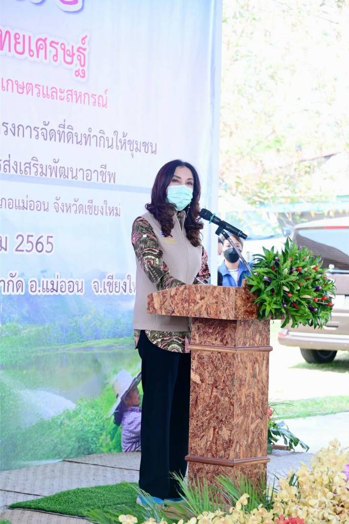 “โครงการจัดที่ดินทำกินให้ชุมชนตามนโยบายรัฐบาลในพื้นที่ ตำบลแม่ทา อำเภอแม่ออน จังหวัดเชียงใหม่ นับว่าเป็นพื้นที่ต้นแบบ ให้แก่พื้นที่โครงการ คทช.หลาย ๆ แห่ง ได้นำไปศึกษาและใช้แนวคิดของชุมชนแห่งนี้ ไปปรับใช้ ส่วนหนึ่งของความสำเร็จ เกิดจากความเข้มแข็งของผู้นำชุมชน ความร่วมมือจากชาวแม่ทา และองค์กรทางเศรษฐกิจในชุมชน อย่างสหกรณ์ที่พยายามขับเคลื่อนร่วมกับชุมชนอย่างมีเอกภาพ เป็นไปในทิศทางเดียวกัน ระบบสหกรณ์ ยังคงมีความสำคัญต่อการพัฒนาเศรษฐกิจและสังคมของสมาชิกในชุมชนแห่งนี้ ให้ดียิ่งขึ้นไปเรื่อย ๆ และฝากความหวังไว้กับคนรุ่นใหม่ ให้ช่วยกันขับเคลื่อน ระบบเกษตรและการตลาดอินทรีย์ ที่สร้างความปลอดภัยต่อสุขภาพผู้คนในสังคม สร้างความมั่นคงทางรายได้ของคนในชุมชน ให้มีความเข้มแข็ง และยั่งยืน เพื่อให้เป็นไปตามแผนปฏิบัติราชการ และวิสัยทัศน์ ของกระทรวงเกษตรและสหกรณ์ ปี 2565 คือ ภาคเกษตรมั่นคง เกษตรกรมั่งคั่ง ทรัพยากรเกษตรยั่งยืน ต่อไป” รมช.มนัญญา กล่าว