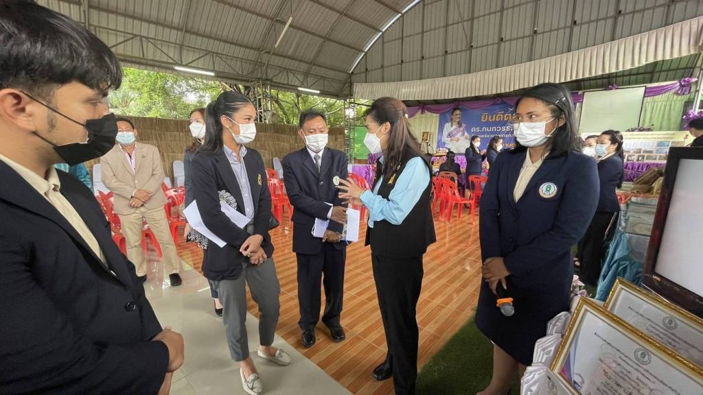 "ครูโอ๊ะ ยังมีความประทับใจกับการต้อนรับเมื่อครั้งแรกที่เคยมาเยือนจังหวัดบึงกาฬ เพราะทุกท่านให้การต้อนรับจากหัวใจอันงดงามท่ามกลางสายฝน สิ่งที่สัมผัสในครั้งนั้นคือทราบซึ้งใจมาก ทุกคนถอดรองเท้าเพราะฝนตกหนัก ครูโอ๊ะก็ถอดเหมือนกันเพราะเราหัวใจเดียวกัน ซึ่งในช่วงสถานการณ์การแพร่ระบาดของโรคโควิด-19 มีหลายสิ่งหลายอย่างที่เกิดขึ้น ทำให้เราต้องขับเคลื่อนและปรับตัว แต่เราชาว กศน.ก็สามารถทำได้ กระทั่งมาถึงโครงการ พาน้องกลับมาเรียน โครงการนี้ต้องเกิดขึ้น เพราะพบว่ามีเด็กหลุดจากระบบการศึกษาเป็นจำนวนมาก เมื่อเด็กออกจากระบบการศึกษาอยู่ในระบบ สพฐ.ไม่ได้ จึงต้องมาเรียนกับ กศน. ซึ่ง กศน.ก็พร้อมรับ โดยครู กศน.จะใช้หลักจิตวิทยาและหัวใจ มาจัดการเรียนการสอน เพื่อให้ก่อเกิดประโยชน์สูงสุด รวมถึงการจัดการเรียนการสอนให้กับผู้พิการ ผ่านการ ปักหมุด กศน. ซึ่งจะให้การดูแลผู้พิการ ที่ถือเป็นกลุ่มที่เปราะบางต้องได้รับการดูแลเป็นพิเศษ โดยจพให้การดูแลครอบคลุมถึงการดูแลครอบครัว จัดการเรียนการสอนตามความต้องการ สร้างงาน สร้างอาชีพ สร้างรายได้ และสร้างความมั่นคงให้กับผู้พิการและครอบครัวต่อไป