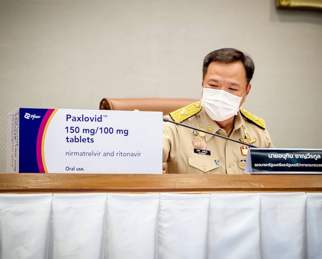 นายอนุทิน กล่าวว่า รัฐบาลให้ความสำคัญกับการเข้าถึงยารักษาโควิด-19 ที่มีประสิทธิผล มีข้อมูลทางวิชาการหรือผลการศึกษาวิจัยที่มีคุณภาพเพียงพอในการสนับสนุนการตัดสินใจเชิงนโยบาย เพื่อพิจารณาเลือกและจัดหายาที่เหมาะสมในการนำมาใช้กับผู้ติดเชื้อโควิด ซึ่งปัจจุบันประเทศไทยมีการใช้ยาต้านไวรัสรักษาผู้ป่วยโควิด ได้แก่ ยาฟาวิพิราเวียร์ ยาเรมเดซิเวียร์ ยาโมลนูพิราเวียร์ และยาตัวใหม่ที่กำลังนำมาใช้ คือ ยาแพ็กซ์โลวิด ที่ขึ้นทะเบียนกับสำนักงานคณะกรรมการอาหารและยา(อย.) เพื่อใช้รักษาโควิดโดยตรง ไม่ใช่เป็นเพียงยาต้านไวรัสทั่วไป
