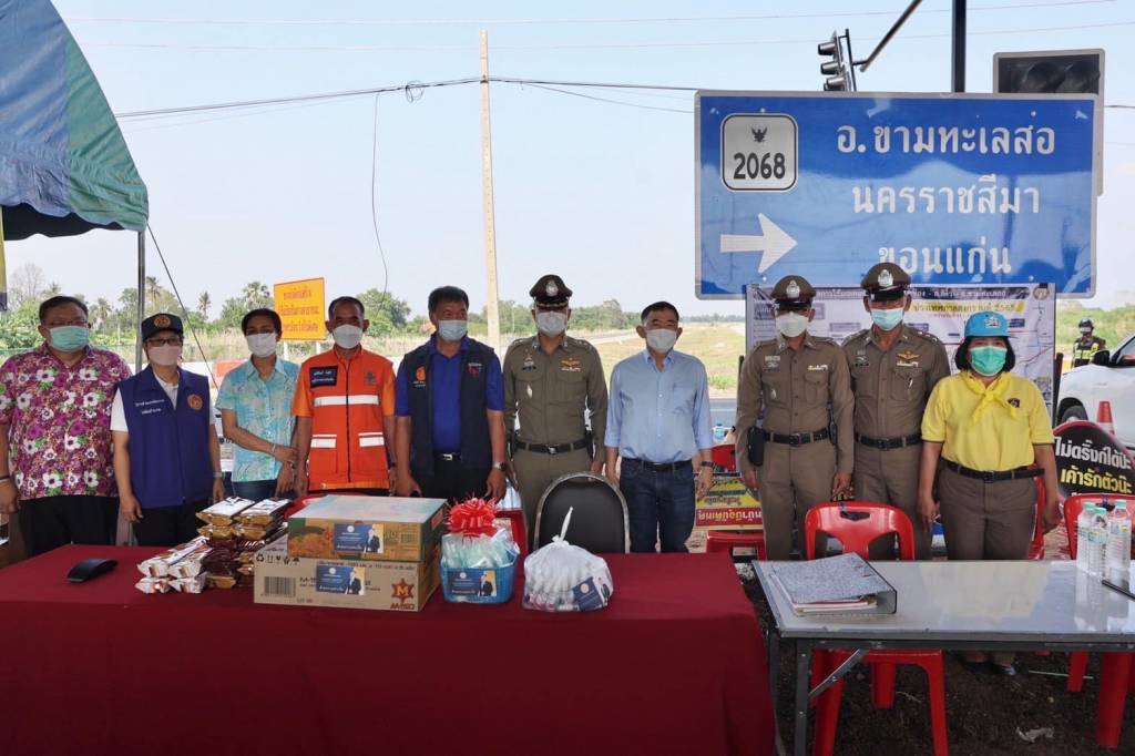 วันเสาร์ที่ 16 เมษายน 2565 เวลา 15.00 น. นายวีรศักดิ์ หวังศุภกิจโกศล รัฐมนตรีช่วยว่าการกระทรวงคมนาคมลงพื้นที่ตรวจเยี่ยมและให้กำลังใจเจ้าหน้าที่ผู้ปฏิบัติงาน พร้อมนายภูมิสิทธิ์ วังคีรี รอง ผวจ.นครราชสีมา, นายชูศักดิ์ ชุนเกาะ รอง ผวจ.นครราชสีมา, นายวิสิทธิ์ พิทยาภรณ์ ส.ส.นครราชสีมา เขต 13 ณ จุดบริการประชาชน อ.ขามทะเลสอ จ.นครราชสีมา ในช่วงเทศกาลสงกรานต์ พร้อมเน้นย้ำการป้องกันและลดอุบัติเหตุทางถนน สงกรานต์ปลอดภัย ไร้อุบัติเหตุ ปลอดภัยจากโควิด-19 โดยมีนายจิระพงศ์ เทพพิทักษ์ ผู้อำนวยการสำนักงานทางหลวงที่ 10 (นครราชสีมา) พร้อมด้วยคณะผู้บริหาร สทล.10, นายก้องพิภพ อารยรังศรี ผู้อำนวยการสำนักงานทางหลวงชนบทที่ 5, นางรุ่งกานต์ ทองนาคโคกกรวด ปลัดอ.ขามทะเลสอ, พ.ต.อ.ภัทราวุธ สีหะ ผกก.สภ.ขามทะเลสอ, นายรักชาติ กิริวัฒนศักดิ์ ประธานสภาฯ อบจ.นครราชสีมา, นางภัทริกา มากเมือง ส.อบจ.อ.ขามทะเลสอ, หัวหน้าส่วนราชการ เจ้าหน้าที่ส่วนท้องที่และท้องถิ่น หน่วยงานที่เกี่ยวข้อง เจ้าหน้าที่อาสาสมัคร กู้ภัย ร่วมกันปฏิบัติหน้าที่ตามมาตรการป้องกันและลดอุบัติเหตุทางถนนช่วงเทศกาลสงกรานต์ 2565 ของจังหวัดนครราชสีมา โดยได้ให้กำลังใจ พร้อมมอบสิ่งของ เครื่องดื่ม ขนม และเจลแอลกอฮอล์ให้แก่เจ้าหน้าที่ที่ปฏิบัติงาน ณ จุดบริการประชาชนถนนมอเตอร์เวย์ (M6) จุดตัดถนนสายโคกกรวด-โนนไทย กม.8+600 อ.ขามทะเลสอ จ.นครราชสีมา