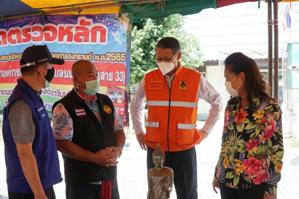 จากนั้นได้เดินทางไปตรวจเยี่ยมให้กำลังใจเจ้าหน้าที่ ผู้ปฏิบัติงานที่ ตามจุดตรวจความปลอดภัยต่างๆ จำนวน 3 จุด ได้แก่ จุดตรวจหน้า สภ.ประจันตคาม ตำบลประจันตคาม อำเภอประจันตคาม จุดตรวจหน้า อบต.นนทรี ตำบลนนทรี อำเภอกบินทร์บุรี และจุดตรวจหน้า บริษัท ไอเอ็มอี จำกัด ตำบลลาดตะเคียน อำเภอกบินทร์บุรี โดยมี นายพงษ์สิทธิ์ เนื่องจำนงค์ รองผู้ว่าราชการจังหวัดปราจีนบุรี นายสฤษดิ์ บุตรเนียน ส.ส.จังหวัดปราจีนบุรี เขต 3 พรรคภูมิใจไทย นายทัศนัย สุธาพจน์ ปลัดจังหวัดปราจีนบุรี นางสุภาภรณ์ ปาลโฉม ผู้อำนวยการวิทยาลัยเทคนิคปราจีนบุรี ผู้นำท้องที่ท้องถิ่น และผู้แทนจากหน่วยงานราชการต่างๆ ร่วมให้การต้อนรับ