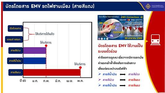 ทั้งนี้ได้เตรียมออกบัตรโดยสารรายเดือนร่วมกับรถเมล์ปรับอากาศ ขสมก. ราคา 2,000 บาท สามารถใช้บริการสายสีแดงได้ 50 เที่ยว และใช้รถเมล์ได้ไม่จำกัดจำนวนเที่ยว โดยขณะนี้อยู่ระหว่างนำเสนอ คณะกรรมการขนส่งทางบกกลาง คาดว่าจะสามารถจำหน่ายได้เดือนมิถุนายน 2565 นอกจากนี้ยังได้เปิดรับฟังความเห็นของประชาชนผ่านช่องทางต่างๆ เพื่อนำมาปรับปรุงการให้บริการ โดยที่ผ่านมา ได้มีข้อเสนอแนะของผู้ใช้บริการที่สำคัญ ได้แก่ การเพิ่มตู้เติมเงินบัตรอัตโนมัติ การเพิ่มบริการให้สามารถเติมเงินบัตร 30 วัน 30 เที่ยวได้ การเพิ่มความถี่ในการเดินรถ การจัดรถสาธารณะเชื่อมต่อกับสถานีรองรับการเดินทางให้เพียงพอต่อเนื่อง เพื่อส่งเสริมให้คนมาใช้บริการเพิ่มขึ้น การปรับปรุงป้ายบอกทางให้ชัดเจน เป็นต้น นอกจากนี้ได้ให้หน่วยงานที่เกี่ยวข้องถอดบทเรียนด้านการประชาสัมพันธ์ที่เป็นปัญหาในโครงการอื่นๆ เพื่อนำมาปรับปรุงแนวทางในการดำเนินการด้านประชาสัมพันธ์ให้มีประสิทธิภาพเข้าถึงกลุ่มเป้าหมายต่อไป