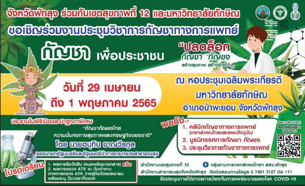 การเปิดงานในครั้งนี้ นายอนุทิน จะแสดงฝีมือในการทำ "ข้าวตะไคร้สุขใจ กินทีไร ยิ้มละมุน" ซึ่งเป็นของพื้นถิ่นของชาวภาคใต้ ที่ได้นำส่วนผสมของกัญชา กัญชง มาประกอบ ทำให้เกิดการสร้างสุขภาพ และสร้างรายได้ ให้กับประชาชน อีกทางหนึ่งด้วย การจัดงานครั้งนี้ จะมีขึ้นในวันที่ 29 เมษายน -1 พฤษภาคม 2565 ณ มหาวิทยาลัยทักษิณ วิทยาเขตพัทลุง