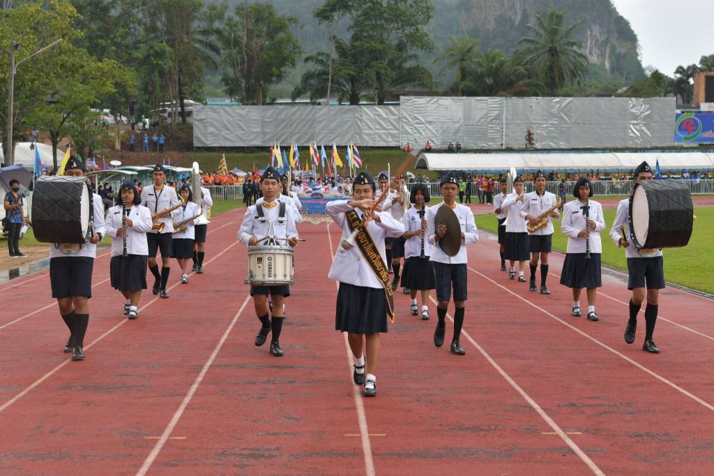 สำหรับบรรยากาศในพิธีเปิดฯ เป็นไปอย่างเรียบง่าย เริ่มด้วยวงดุริยางค์ของโรงเรียนกาญจนาภิเษกวิทยาลัยกระบี่ บรรเลงเพลงเพื่อนำนักกีฬาและเจ้าหน้าที่ของทั้ง 77 จังหวัดเข้าสู่สนาม ต่อด้วยนายสมชาย หาญภักดีปฏิมา รองผู้ว่าราชการจังหวัดกระบี่ จะกล่าวต้อนรับนักกีฬา หลังจากนั้น ดร.นิวัตน์ ลิ้มสุขนิรันดร์ อธิบดีกรมพลศึกษา กล่าวรายงานวัตถุประสงค์ของการจัดการแข่งขันครั้งนี้ ก่อนที่นายพิพัฒน์ รัชกิจประการ รัฐมนตรีว่าการกระทรวงการท่องเที่ยวและกีฬา ประธานในพิธีเปิดฯจะกล่าวและทำพิธีเปิดการแข่งขันฯ