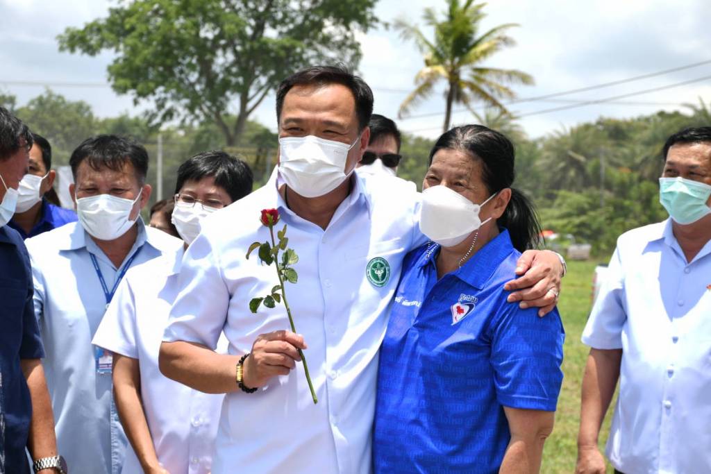 กับ อสม. ผมไม่เคยละเลย ตอนนี้ ท่านคือ หมอคนที่ 1 ตามนโยบาย 3 หมอ เราให้เกียรติท่าน ท่านต้องเข้ามาช่วยหมอ เรามีกรมสนับสนุนบริการสุขภาพ ที่เข้มแข็ง คอยดูแล อสม. มีโครงการฌาปนกิจสงเคราะห์ มีโครงการตรวจสุขภาพ อสม. แล้วเราจะสนับสนุนให้มีการตรวจคัดกรองมะเร็งปอดด้วย กับ อสม. ท่านต้องฉีดถึง 4 เข็ม เพราะท่าน เป็นตัวอย่างประชาชน ถ้า อสม. ไม่ฉีด ประชาชน ก็ไม่อยากฉีด วัคซีน มีประโยชน์ช่วยลดอาการเจ็บป่วย ร้อยละ 98 ของผู้เสียชีวิตวันนี้ อยู่ในกลุ่มไม่ได้รับวัคซีน แล้วเราจะให้โควิด-19 เป็นโรคประจำถิ่น คือมีวัคซีนเข้ามาทุกปี ป่วย ก็ต้องรักษาได้ โควิด ในอนาคต มันจะไปอยู่ในจุดเดียวกับไข้หวัดใหญ่ คือ ฉีดปีละเข็ม แต่ตอนนี้ กำลังพัฒนาวัคซีน ให้ไปถึงจุดนั้นอยู่ แต่เมื่อยังไปไม่ถึงก็ต้องฉีดเรื่อยๆ พี่น้อง อสม. ก็ต้องช่วยกันรณรงให้คนมาฉีด นอกจากนั้น เราก็มียา ในอนาคต อาจจะมียาเฉพาะรักษาโควิด ที่ขายตามร้านขายยา