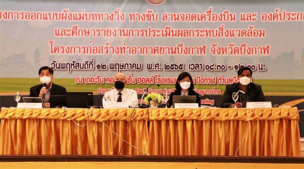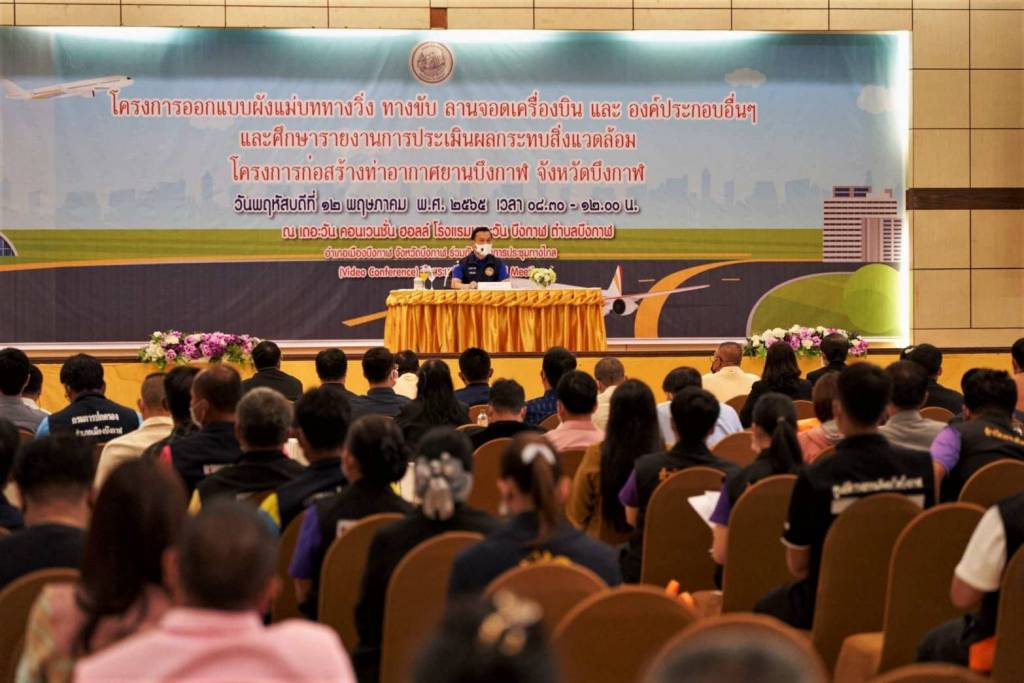 วันนี้ ( 12 พ.ค. 65 ) นายทรงศักดิ์ ทองศรี รัฐมนตรีช่วยว่าการกระทรวงมหาดไทย (มท.2) เป็นประธานในพิธีเปิดการประชุมรับฟังความคิดเห็นของประชาชน ครั้งที่ 1 โครงการออกแบบผังแม่บททางวิ่ง ทางขับ ลานจอดเครื่องบิน และองค์ประกอบอื่นๆ และศึกษารายงานการประเมินผลกระทบสิ่งแวดล้อม โครงการก่อสร้างท่าอากาศยานบึงกาฬ โดยมีนายสนิท ขาวสอาด ผู้ว่าราชการจังหวัดบึงกาฬ กล่าวต้อนรับ และนายวิทวัส ภักดีสันติสกุล รองอธิบดีกรมท่าอากาศยาน กล่าวรายงานถึงวัตถุประสงค์ของโครงการ ณ ห้องประชุมเดอะวัน คอนเวนชั่น ฮอลล์ โรงแรมเดอะวัน บึงกาฬ ตำบลบึงกาฬ อำเภอเมืองบึงกาฬ ซึ่งมีหัวหน้าส่วนราชการ ผู้แทนจากภาคส่วนต่างๆ ทั้งภาคเอกชน ประชาชน ผู้นำชุมชน องค์กรปกครองส่วนท้องถิ่น จำนวน 500 คน ร่วมในงาน