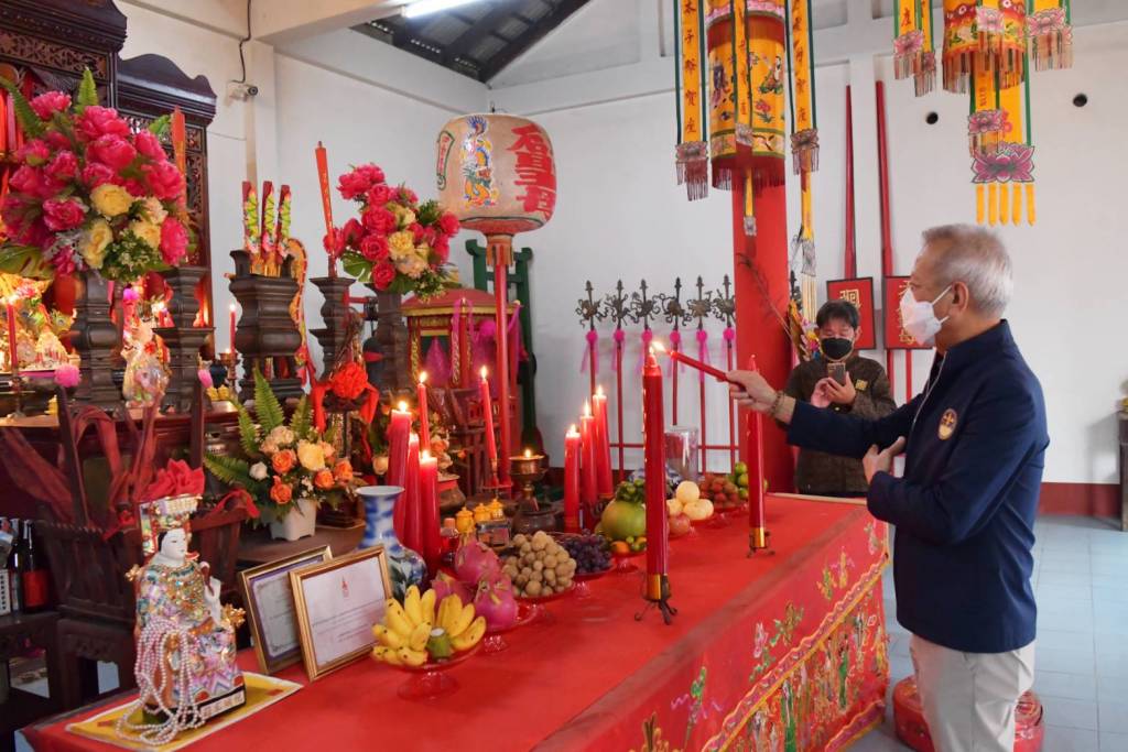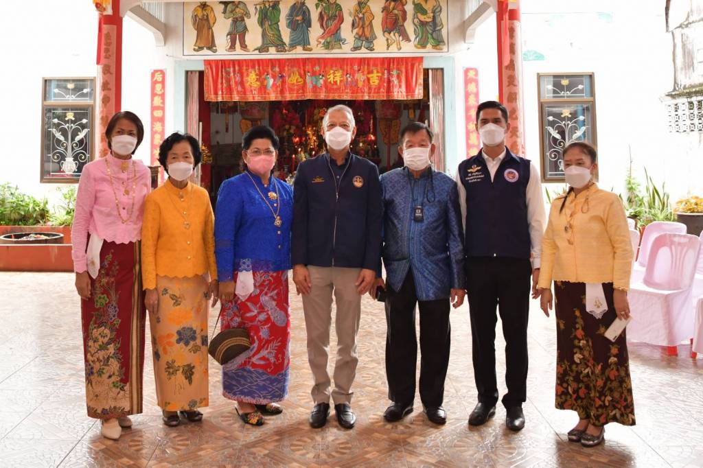 โดยก่อนที่จะเริ่มพิธีรับมอบอุปกรณ์กีฬา รมว.ท่องเที่ยวและกีฬา และคณะได้มีโอกาสเดินทางไปยังศาลเจ้าไหหลำ (ศาลเจ้าแม่ทับทิมหลาดใต้ อำเภอกันตัง จังหวัดตรัง) เพื่อสักการะเจ้าแม่ทับทิมที่ซึ่งเป็นศูนย์รวมความเลื่อมใสศรัทธาของคนกันตังเชื้อสายจีน คอยหล่อหลอมสานสร้างความสามัคคีและสัมพันธ์อันดีของชาวกันตัง ช่วยในการสร้างบ้านพัฒนาเมืองกันตังให้มีความเจริญรุ่งเรืองนับแต่อดีตจนถึงปัจจุบัน