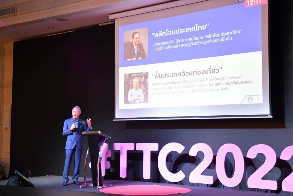8 มิถุนายน 2565 เวลา 23:15รมว.ท่องเที่ยวและกีฬา ปาฐกถาพิเศษ ในหัวข้อเรื่อง “ปัจจัยสู่ความสำเร็จสู่การเป็นจุดหมายท่องเที่ยวเชิงคุณภาพของประเทศไทย”วันที่ 8 มิถุนายน 2565 นายพิพัฒน์ รัชกิจประการ รัฐมนตรีว่าการกระทรวงการท่องเที่ยวและกีฬา (รมว.กก.) กล่าวแสดงปาฐกถาพิเศษ ในหัวข้อ “ปัจจัยสู่ความสำเร็จสู่การเป็นจุดหมายท่องเที่ยวเชิงคุณภาพของประเทศไทย” ซึ่งจัดขึ้นภายใต้การประชุม Thailand Tourism Congress 2022 ในรูปแบบสัมมนาเชิงวิชาการ เพื่อกำหนดยุทธศาสตร์การท่องเที่ยวไทย ให้สามารถปรับตัว และสอดรับกับการเปลี่ยนแปลงของโลก โดยผู้เข้าร่วมประชุมประกอบด้วยนายกสมาคมธุรกิจการท่องเที่ยว และประธานสภาอุตสาหกรรมท่องเที่ยวจังหวัดต่างๆ รวมถึงองค์กรด้านการท่องเที่ยวทั่วประเทศ ประมาณ 200 คน จัดขึ้นระหว่างวันที่ 6-8 มิถุนายน 2565 ณ โรงแรม Beyond Resort Kata Beach หาดกะตะ อำเภอเมือง จังหวัดภูเก็ต แชร์บทความนี้: