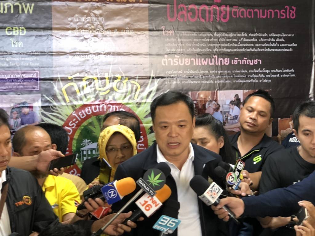 5 กรกฎาคม 2562 เวลา 23:17“อนุทิน” เยี่ยมชม “ร.พ.เจ้าพระยาอภัยภูเบศร” ประกาศผลักดันนโยบายกัญชาเพื่อการแพทย์นายอนุทิน ชาญวีรกูล หัวหน้าพรรคภูมิใจไทย นำสมาชิกพรรค อาทิ นางสาวกนกวรรณ วิลาวัลล์ รองหัวหน้าพรรค, น.พ.สำเริง แหยงกระโทก ทีมยุทธศาสตร์พรรค นายอำนาจ วิลาวัลล์, นายสฤษดิ์ บุตรเนียร ส.ส.ปราจีนบุรี เข้าเยี่ยมชมโรงพยาบาล เจ้าพระยาอภัยภูเบศร เพื่อศึกษากระบวนการปลูก และการใช้กัญชาในทางการแพทย์ นายอนุทิน กล่าวว่า วันนี้พรรคต้องการความรู้เพิ่มเติมเรื่องการใช้กัญชาเพื่อรักษาคนป่วย ถ้าพรรคมีโอกาสบริหารบ้านเมือง นโยบายกัญชาเสรีเพื่อการแพทย์ต้องได้รับการผลักดัน กัญชาทางการแพทย์ จะเป็นตัวเต็มนโยบายอื่นๆ ของกระทรวง “ที่ต้องตอกย้ำเรื่องการแพทย์ เพราะการช่วยเหลือคนเป็นเรื่องของมนุษยธรรม และเป็นจุดเริ่มต้นในการขยับเรื่องกัญชา ซึ่งไม่มีเสียงคัดค้าน เป็นการช่วยเหลือเพื่อนมนุษย์ด้วยกัน” มาถึงจุดนี้ ตนต้องการความช่วยเหลือจากฝ่ายบุคคลากรทางด้านสาธารณสุขด้วย เพราะความยากในการทำนโยบาย ไม่ใช่แค่กฎหมาย แต่ต้องทำให้ประชาชนเข้าใจ ต้องพึ่งพาหมอ พยาบาล ช่วย นายอนุทิน กล่าวต่อว่า มาที่นี่ และได้ไอเดียเพิ่มเติมจำนวนมาก หากได้ทำงานต้องเริ่มจากเรื่องการแพทย์ตามที่กล่าว และจะเดินหน้าต่อยอดจากกฎหมายที่มีอยู่ แต่ส่วนใครอยากจะปลูก อยากจะขาย มันต้องให้กฎหมายเข้ามาดูแลเช่นกัน ด้านนายแพทย์นำพล แดนพิพัฒน์ ผู้อำนวยการโรงพยาบาลเจ้าพระยาอภัยภูเบศร กล่าวว่า ที่นี่เป็นที่แรกซึ่งใช้กัญชาในการรักษาโรคอย่างถูกกฎหมาย โรคที่กัญชามีประสิทธิภาพในการรักษาคือ ลมชัก อัลไซเมอร์ พาร์กินสัน ซึ่งหลังได้รับยา ก็จะโทรติดตามผล หลังจากที่เปิดคลีนิครักษา มีคนคิดต่อมามากมาย ในฐานะที่เป็นความหวังของประชาชน ภก. ดร.สุภาภร ปิติพร หัวหน้ากลุ่มงานเภสัชกรรม โรงพยาบาลเจ้าพระยาอภัยภูเบศร กล่าวว่า ทางโรงพยาบาลมีการเตรียมเรื่องนี้มาเป็น 10 ปี เมื่อปฏิบัติจริง ต้องยอมรับว่า ความรู้เรื่องกัญชาในวงการแพทย์สมัยใหม่ ของไทยล้าหลังมาก หวังให้ภาครัฐเปิดช่องกฎหมาย ให้มีการศึกษา วิจัย อย่างเต็มที่ ทางโรงพยาบาล ขอเสนอให้พัฒนาเทคนิคการปลูก พัฒนาศูนย์การสกัด ขยายตลาดทางการแพทย์ พัฒนาศักยภาพการเกษตร วิจัยต่อเรื่อง และดูแลเรื่องราคา ขณะที่ ภก.อาสาฬา เชาวน์เจริญ เภสัชกรชำนาญการประจำโรงพยาบาลเจ้าพระยาอภัยภูเบศร ระบุว่า ตนทดลองใช้น้ำมันกัญชากับผู้ป่วยที่ผ่านการคัดกรองมาอย่างละเอียด กับผู้ป่วยพาร์กินสัน โรคลมชัก อัลไซเมอร์ และมะเร็งลำไส้ใหญ