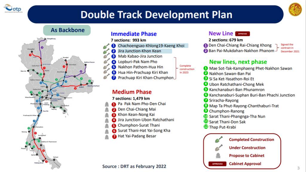 - การพัฒนารถไฟฟ้าสายสีน้ำเงิน ช่วงบางซื่อ – ท่าพระ การพัฒนาระบบรถไฟระหว่างเมือง โครงการรถไฟทางคู่ ช่วงจิระ – ขอนแก่น และ ช่วงมาบกะเบา – จิระ