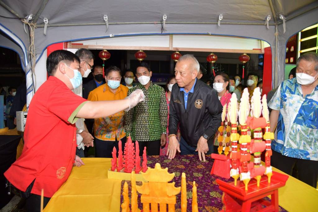 จากนั้น รมว.ท่องเที่ยวและกีฬา พร้อมคณะฯ รับชมการแสดง Lighting ภายใต้ธีม Eat Pray Love บริเวณตึกชิโนยูโรเบียน ชมชุดการแสดงพหุวัฒนธรรมจากเยาวชนในพื้นที่ ชมนิทรรศการพหุวัฒนธรรม ภายในอาคารตึกชิโนโปรตุกิส และร่วมชมการออกร้านอาหาร สินค้า ผลิตภัณฑ์เชิงสร้างสรรค์บนฐานทุนวัฒนธรรม ชมการสาธิตการทำอาหารมงคล และสินค้ามงคล จากตัวแทนชุมชน สมาคม และหน่วยงานในพื้นที่