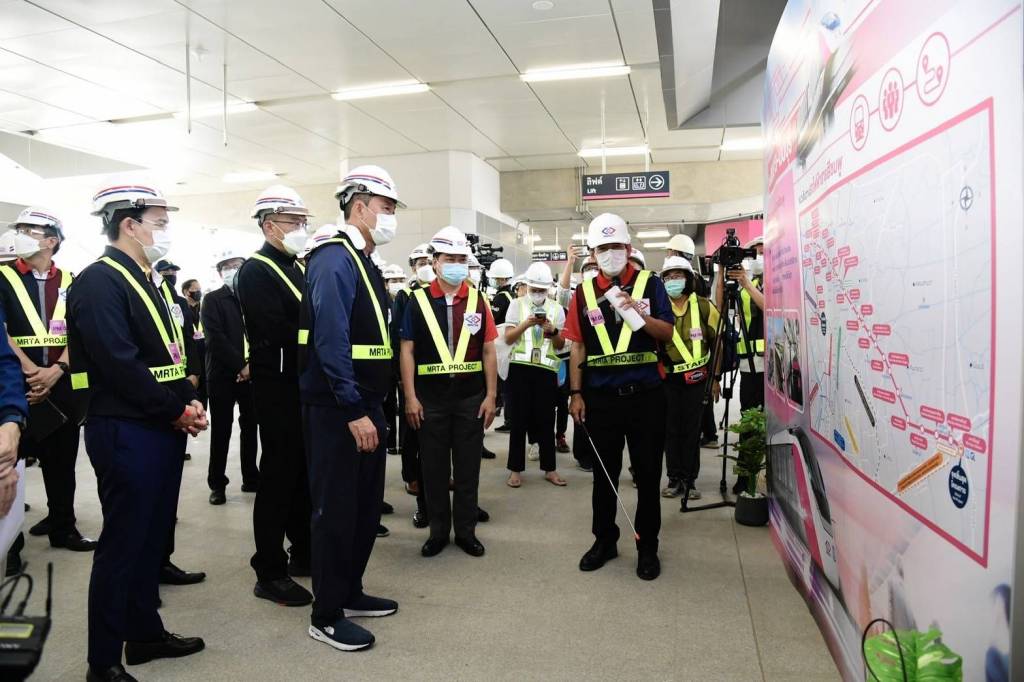 สำหรับปัญหาและอุปสรรคที่พบในการก่อสร้างโครงการรถไฟฟ้าสายสีเหลือง ช่วงลาดพร้าว - สำโรง และโครงการรถไฟฟ้าสายสีชมพู ช่วงแคราย - มีนบุรี พบว่าบางพื้นที่มีสาธารณูปโภคตามแนวเส้นทางก่อสร้างอยู่ด้วย ส่งผลให้การก่อสร้างมีความล่าช้า ซึ่งรัฐมนตรีว่าการกระทรวงคมนาคมได้มอบนโยบายให้เร่งประสานขอความร่วมมือกับหน่วยงานที่เกี่ยวข้อง เพื่อให้การก่อสร้างเดินหน้าได้อย่างราบรื่นแล้วเสร็จตามกำหนด และดำเนินการคืนพื้นที่โดยเร็วเพื่อบรรเทาปัญหาจราจร ลดผลกระทบต่อการเดินทางของประชาชนให้มากที่สุด พร้อมทั้งให้ความสำคัญกับการออกแบบเพื่อคนทั้งมวล (Universal Design) และการกำหนดอัตราค่าโดยสารที่มีความหมาะสม เป็นธรรม