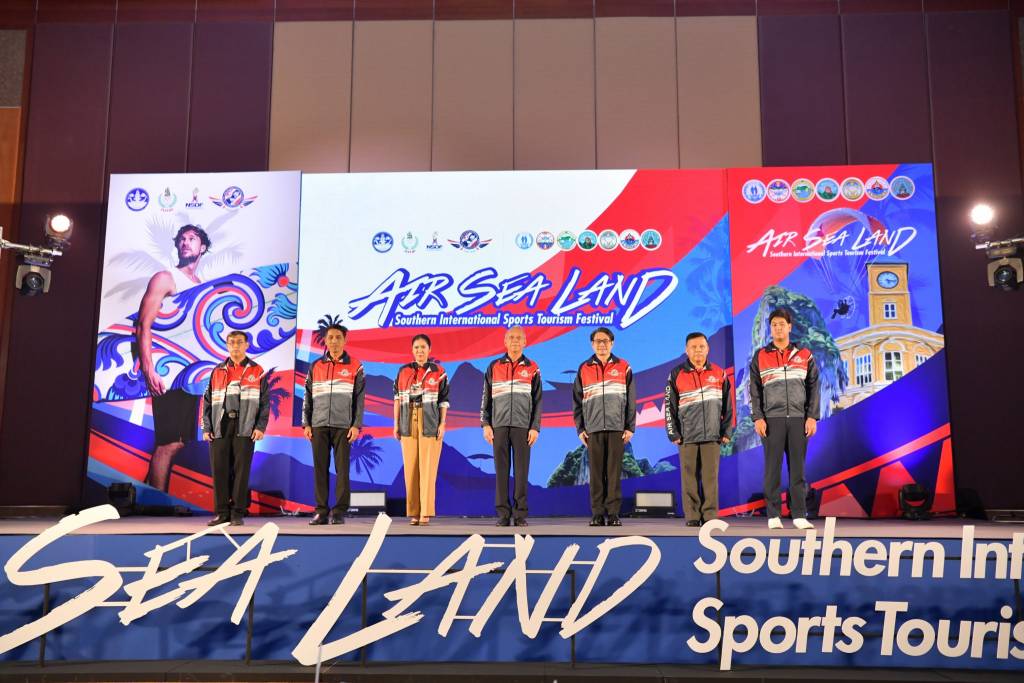 ดร.สุปราณี คุปตาสา ผู้จัดการกองทุนพัฒนาการกีฬาแห่งชาติ กล่าวว่า กองทุนพัฒนาการกีฬาแห่งชาติ ซึ่งเป็นแหล่งเงินทุนในเรื่องของกิจกรรมกีฬา ได้ให้การสนับสนุนการจัดกิจกรรม Air Sea Land ในครั้งนี้ เพราะว่าเรามั่นใจและเชื่อว่ากีฬาจะนำคนมาอยู่รวมกัน เมื่อคนมาอยู่รวมกัน ก็จะมีการบริโภค มีการเดินทาง ซึ่งแน่นอนทำให้เราเห็นเป้าหมายในการส่งเสริมทั้งในมิติของเศรษฐกิจในพื้นที่และจังหวัดที่อยู่ใกล้เคียงอีกด้วย รวมถึงมิติด้านสังคมในการส่งเสริมกีฬา และที่สำคัญ 7 จังหวัดภาคใต้ ถือเป็นโครงการนำร่อง เพื่อพัฒนาแนวทางการจัดการแข่งขันกีฬาและการท่องเที่ยวไปด้วยกันในพื้นที่ต่อๆ ไปในอนาคต เช่น อาจจะเป็นเขตเศรษฐกิจสามเหลี่ยมทองคำ หรือพื้นที่อื่นๆ ที่กองทุนฯ สามารถเข้าไปมีส่วนร่วม เพราะฉะนั้นกองทุนฯ ก็หวังเป็นอย่างยิ่งว่าการจัดการแข่งขันกีฬา ในมหกรรมท่องเที่ยวเชิงกีฬา 2 มหาสมุทร หรือ Air Sea Land Southern International Sports Tourism Festival จะเป็นประโยชน์ต่อทุกภาคส่วนอย่างแท้จริง