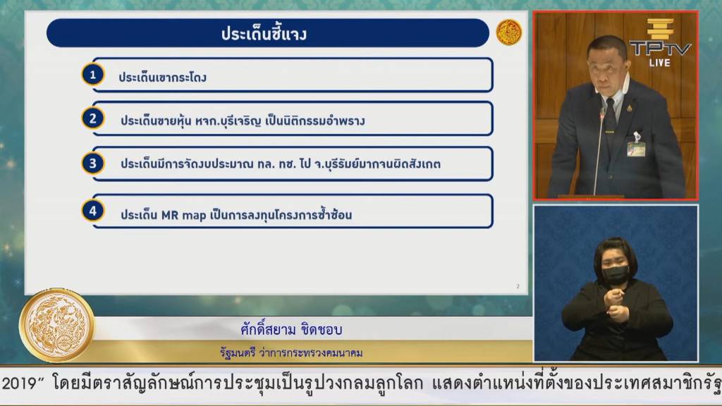 และประเด็นสุดท้าย ข้อกล่าวหาโครงการ MR-MAP มีความซ้ำซ้อนโครงการรถไฟทางคู่ ความเร็วสูง และมอเตอร์เวย์ ทำให้เกิดการแย่งปริมาณผู้โดยสารกันเอง เกิดการขาดทุน ทำให้รัฐต้องแบกรับภาระ เกิดหนี้สูงถึง 5.7 ล้านล้านบาท ผลประโยชน์ไม่ตกถึงประชาชนในระดับพื้นที่ นายศักดิ์สยาม กล่าวชี้แจงว่า รัฐบาลมีกรอบแนวคิดในการวางแผนแม่บท MR-MAP คือ 1. แก้ปัญหาของประเทศในระบบคมนาคมขนส่งที่มีมาในอดีตการปะปนกันของรถบรรทุกขนาดใหญ่ และรถส่วนบุคคลที่สัญจรในเมือง 2. สร้างโอกาสสร้างโครงสร้างพื้นฐานอย่างเป็นระบบเชื่อมภูมิภาคเพื่อให้ประเทศไทยเป็นศูนย์กลางคมนาคมขนส่งของภูมิภาคได้อย่างแท้จริง และ 3. วางรากฐานโครงสร้างพื้นฐานที่ถูกต้องแก่ประเทศไทยอย่างเป็นระบบ วางแผนพร้อมกัน แต่ไม่จำเป็นต้องก่อสร้างพร้อมกัน