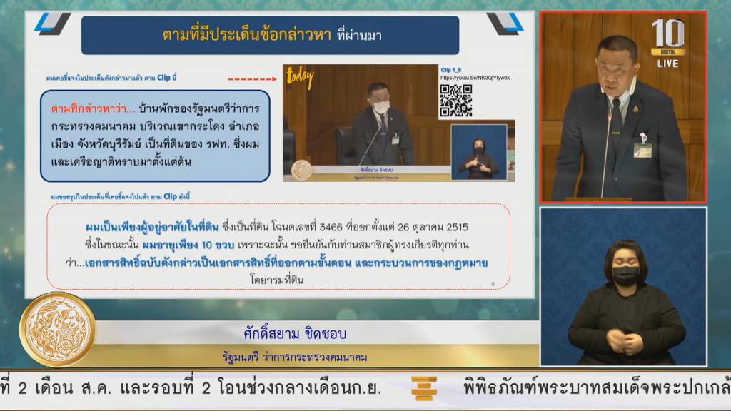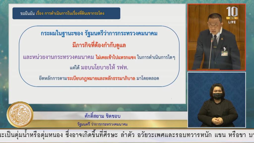 สำหรับประเด็นที่กล่าวหาว่าตนแทรกแซงการทำงานของรฟท. ขอยืนยันว่า ตั้งแต่เข้ามารับหน้าที่ รมว.คมนาคม เมื่อเดือนกรกฎาคม 2562 ได้บริหารจัดการ และพัฒนาการดำเนินการในที่ดินของ รฟท. โดยมีการแต่งตั้งคณะทำงานเพื่อกำหนดยุทธศาสตร์การบริหารพื้นที่ให้สอดคล้องกับแผนพัฒนาโครงสร้างพื้นฐาน พร้อมมีนโยบายให้รฟท. ติดตามความก้าวหน้าการดำเนินการของกรมที่ดินในการพิจารณาเพิกถอนเอกสารสิทธิ์ให้ดำเนินการตามกฎหมายและหลักธรรมาภิบาลอย่างเคร่งครัด ให้ปฎิบัติด้วยความเท่าเทียม เสมอภาค โปร่งใส และให้รายงานความคืบหน้าเป็นประจำทุกเดือน