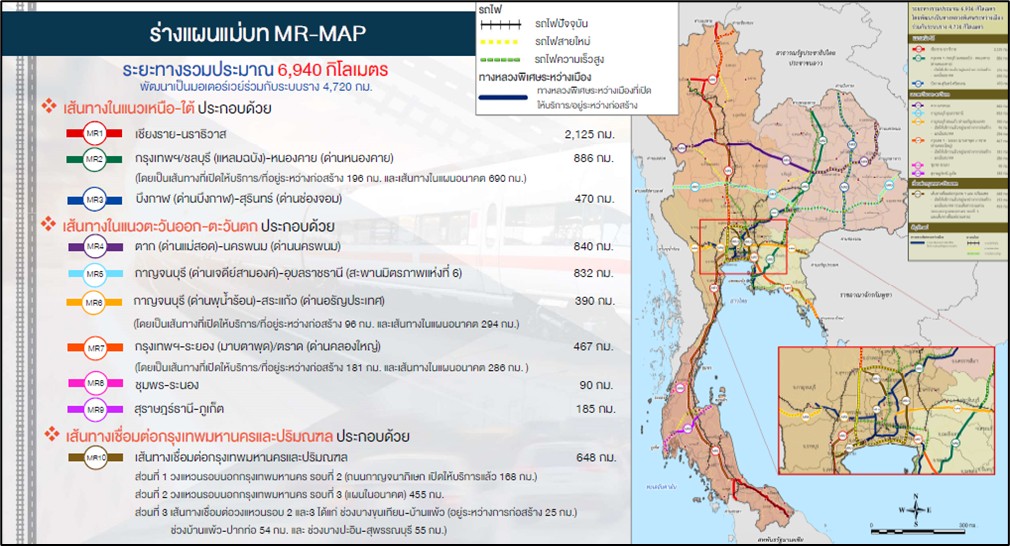 โดยแผนแม่บท MR-Map นั้นเป็นการวางแผนพัฒนาโครงข่ายคมนาคมของประเทศ จะพัฒนาตามดีมานด์ที่เกิดขึ้น โดยจะต้องวางแผนพร้อมกัน เพื่อจะได้ลดความซ้ำซ้อนของโครงการ แต่ไม่จำเป็นต้องก่อสร้างพร้อมกัน ซึ่งจะเน้นให้ลดการลงทุนของภาครัฐให้เหลือแต่เฉพาะค่าเวนคืนที่ดิน และเปิดโอกาสให้เอกชนเข้ามาร่วมลงทุนพัฒนาเส้นทางถนนมอเตอร์เวย์ พัฒนาเส้นทางรถไฟ และพัฒนาพื้นที่เชิงพาณิชย์รอบๆ โครงการ MR-Map