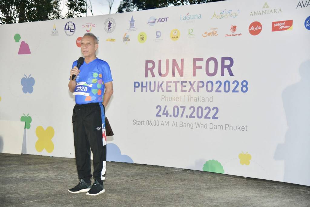 ซึ่งการจัดกิจกรรมวิ่งการกุศลในครั้งนี้ เพื่อประชาสัมพันธ์และสร้างการรับรู้ให้ประชาชนชาวภูเก็ต ได้มีส่วนร่วมในการแสดงออกถึงการสนับสนุนการเสนอตัวเป็นเจ้าภาพจัดงาน Specialised Expo ที่จะเกิดขึ้นในปี 2028 ซึ่งผมได้รับทราบมาว่ามีผู้สมัครเข้าร่วมกิจกรรมมาแล้วกว่า 3,000 คน และทุกท่านครับ รายได้จากการจัดกิจกรรมทั้งหมดโดยไม่หักค่าใช้จ่ายทางผู้จัดจะมอบให้กับหออภิบาลผู้ป่วยทารกแรกเกิด โรงพยาบาลวชิระภูเก็ต