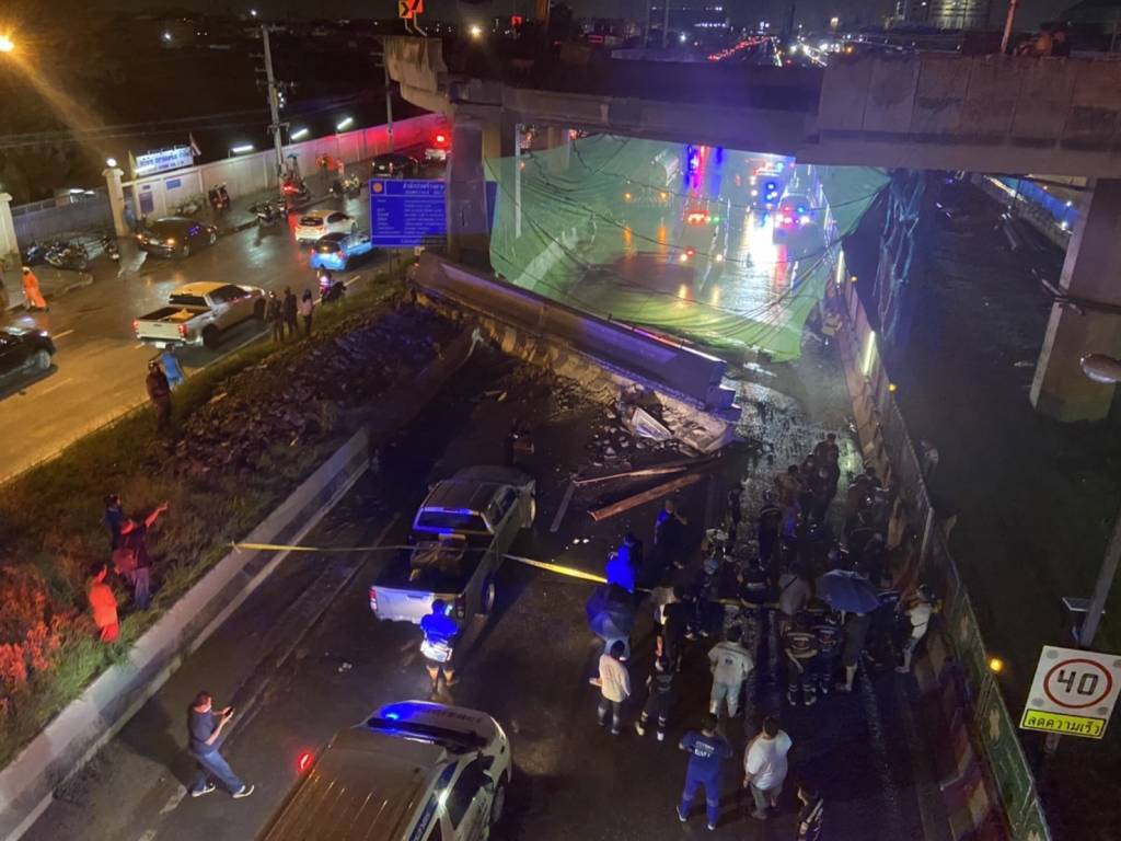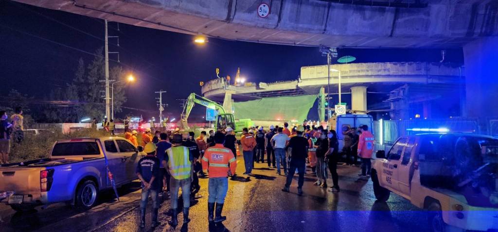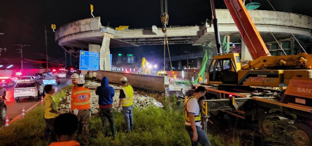 จากการลงพื้นที่ พบว่าเหตุเกิดในวันอาทิตย์ที่ 31 กรกฎาคม 2565 เวลาประมาณ 20.00 น. ถนนพระราม 2 ตอน สะพานข้ามแม่น้ำท่าจีน-นาโคก ที่ กม.34 บริเวณโครงการปรับปรุงสะพานกลับรถบริเวณใกล้กับโรงพยาบาลวิภาราม อำเภอเมือง จังหวัดสมุทรสาคร ขณะที่เกิดเหตุเจ้าหน้าที่คุมงาน และคนงาน อยู่ระหว่างการเตรียมความเรียบร้อยพื้นที่เพื่อจะเทพื้นสะพานใหม่ หลังจากที่ได้ทุบพื้นสะพานช่วงที่ชำรุดเสียหายออกแล้ว ทันใดนั้นคานสะพานลอยตัวริมสุดได้ร่วงหล่นลงมาทับรถยนต์ที่สัญจรบนถนนพระราม 2 เป็นเหตุให้มีรถได้รับความเสียหายจำนวน 3 คัน มีผู้เสียชีวิต 2 ราย และมีผู้ได้รับบาดเจ็บ 2 ราย (ประชาชนในรถเกิดเหตุ เสียชีวิต 1 ราย บาดเจ็บ 1 ราย และเจ้าหน้าที่กรมทางหลวง เสียชีวิต 1 ราย บาดเจ็บ 1 ราย) ซึ่งได้ประสานให้เจ้าหน้าที่กู้ภัยนำส่งโรงพยาบาลแล้ว ทั้งนี้ได้ปิดช่องจราจรช่องทางหลัก (ขาเข้า) โดยให้วิ่งทางคู่ขนานแทน เพื่ออำนวยความสะดวกให้กับผู้ใช้ทาง