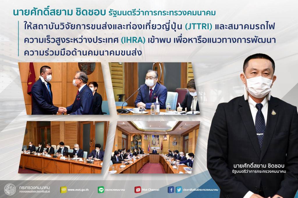 นายศักดิ์สยาม ชิดชอบ กล่าวว่า ที่ประชุมได้หารือในประเด็นด้านความร่วมมือระหว่างกัน โดยเฉพาะประเด็นความท้าทายด้านโลจิสติกส์ของอาเซียนที่นักวิจัยฝ่ายญี่ปุ่นให้ความสนใจศึกษา การพัฒนาประสิทธิภาพการขนส่งภายในประเทศ และการปรับปรุงความเชื่อมโยงของการขนส่งแต่ละสาขาที่กระทรวงคมนาคม ให้ความสำคัญ โดย รัฐมนตรีว่าการกระทรวงคมนาคม ได้แสดงความยินดีกับการก่อตั้งสำนักงานสถาบันวิจัยการขนส่งและท่องเที่ยวญี่ปุ่นประจำภูมิภาคอาเซียน - อินเดีย (JTTRI-AIRO) ณ กรุงเทพฯ เป็นแห่งที่ 2 นอกประเทศญี่ปุ่น ต่อจากสำนักงาน JTTRI ณ กรุงวอชิงตัน ดีซี โดยเห็นว่าจะเป็นโอกาสให้นักวิจัยญี่ปุ่นสามารถ มีส่วนในการให้คำปรึกษา แนะนำ และแลกเปลี่ยนความรู้กับ คค. เพื่อการพัฒนาด้านคมนาคมขนส่ง พร้อมกับส่งเสริมให้ไทยเป็นศูนย์กลางกลางโครงข่ายการขนส่งสินค้าของอาเซียนอย่างมั่นคง ทั้งนี้ JTTRI จะจัดงานสัมมนาเชิงวิชาการ “โลจิสติกส์ของอาเซียนท่ามกลางกระแส ความแปรปรวน - ความท้าทายของภูมิภาค ในช่วงเดือนพฤศจิกายน – เดือนธันวาคม 2565 โดยจะเชิญผู้บริหารและนักวิชาการจากประเทศต่าง ๆ เพื่อแลกเปลี่ยนความเห็นต่อ แนวทางการพัฒนาโลจิสติกส์ของภูมิภาค ซึ่ง คค. โดย สนข. และ ขร. มีความยินดีในความร่วมมือสนับสนุนงานสัมมนาที่จะจัดขึ้น เพื่อการนำมาปรับใช้ให้เกิดประโยชน์ในด้านโลจิสติกส์ไทยอย่างเป็นรูปธรรมในอนาคต