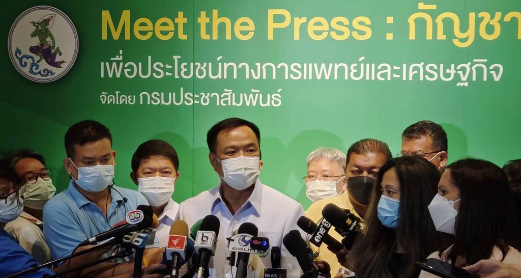17 สิงหาคม 2565 เวลา 9.40 น. นายอนุทิน ชาญวีรกูล รองนายกรัฐมนตรีและรัฐมนตรีว่าการกระทรวงสาธารณสุข กล่าวในพิธีเปิดงาน “Meet the Press: กัญชา กัญชง เพื่อประโยชน์ทางการแพทย์และเศรษฐกิจ” จัดโดยกรมประชาสัมพันธ์ ณ โรงแรมมิราเคิล แกรนด์ คอนเวนชั่น กรุงเทพ ว่าขณะนี้เป็นเวลาสองเดือนกับอีกหนึ่งสัปดาห์หลังการปลดล็อกกัญชา ตนสามารถมารายงานสื่อให้ได้ทราบถึง “ความคืบหน้า” ในเฟสแรก คือการใช้กัญชาทางการแพทย์สร้างสุขภาพ และเฟสที่สอง คือการส่งเสริมพืชกัญชงกัญชาในฐานะพืชเศรษฐกิจ รวมถึงประโยชน์ที่จะเกิดในอนาคต พร้อมเผย รัฐมนตรีมาเลเซียเตรียมเดินทางมาไทยเพื่อศึกษาดูงานกัญชา เตรียมดำเนินนโยบายกัญชาทางการแพทย์ หลังจากหลายประเทศได้เดินหน้าไปแล้ว ล่าสุดเยอรมันเตรียมออกกฎหมายกัญชาเสรี หวังสร้างเศรษฐกิจ กำจัดตลาดมืด