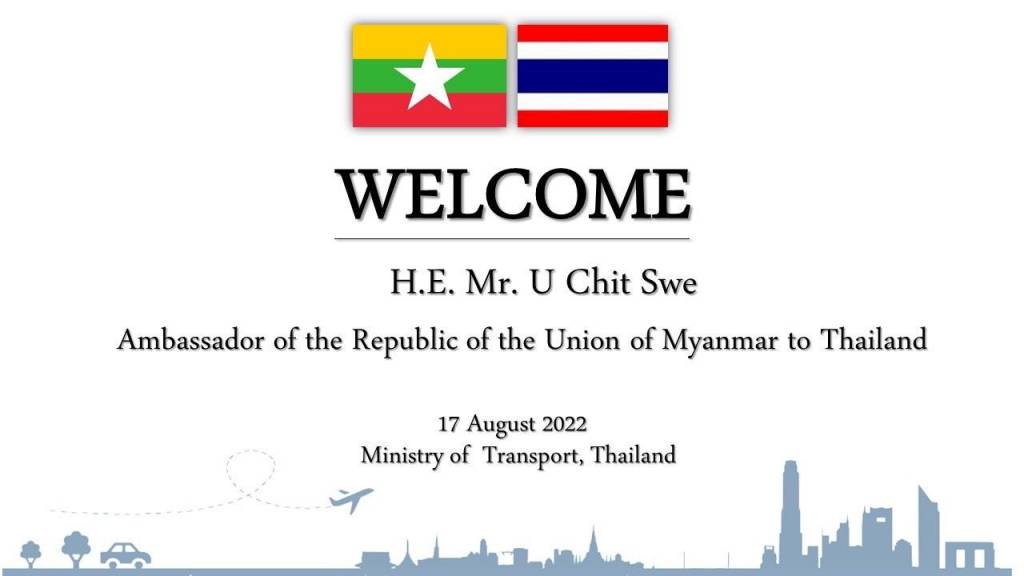 สำหรับความร่วมมือด้านการคมนาคมระหว่างประเทศไทยและสหภาพเมียนมาได้ดำเนินมาอย่างต่อเนื่องและยาวนาน ในการส่งเสริมด้านการค้าการลงทุนผ่านความร่วมมือด้านการคมนาคมขนส่งและระบบโลจิสติกส์ระหว่างสองประเทศและภูมิภาคอาเซียน