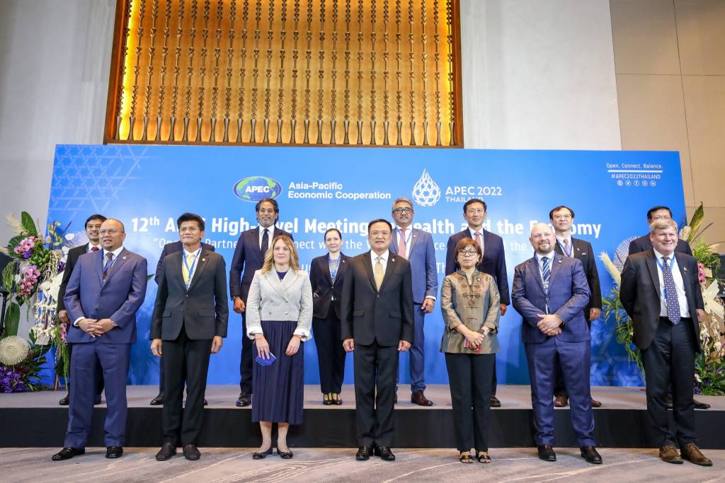 นายอนุทิน กล่าวว่า ยินดีเป็นอย่างยิ่งที่ได้ทำหน้าที่เป็นเจ้าบ้านต้อนรับผู้บริหารระดับสูงจากนานาชาติ มาร่วมประชุมในครั้งนี้ ซึ่งเป็นการต่อยอดมาจากที่ไทยจะได้เป็นเจ้าภาพจัดงานเอเปค ภายใต้หัวข้อ OPEN CONNECT และ BALANCE ถึงเวลาแล้วที่ ผู้คนจะต้องก้าวข้ามวิกฤติโควิด-19 และเปิดรับโอกาสใหม่ๆ เข้ามา ภายใต้การอยู่ร่วมกันกับโรคอย่างเข้าใจ ถึงเวลาที่เราจะต้องกลับไปเชื่อมสัมพันธ์ระหว่างกันอีกครั้ง พร้อมกับการสร้างสมดุลในเรื่องของสุขภาพ และเศรษฐกิจ ซึ่งมา ณ จุดนี้ การก้าวไปข้างหน้าต้องมองให้ครบทั้ง 3 มิติ เศรษฐกิจ สิ่งแวดล้อม และสังคม เราเคยมีบทเรียนจากช่วงการระบาดของโควิด-19 ที่เราทุ่มเทให้กับเรื่องสุขภาพ จนกระทั่งเกิดความเสียหายอย่างมากต่อระบบเศรษฐกิจ ปัจจุบัน เราต้องกลับมาบาลานซ์ 2 เรื่องนี้ ให้ไปด้วยกันได้
