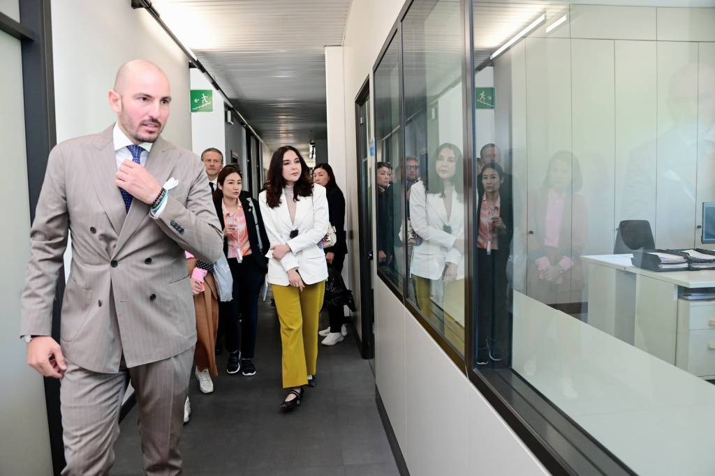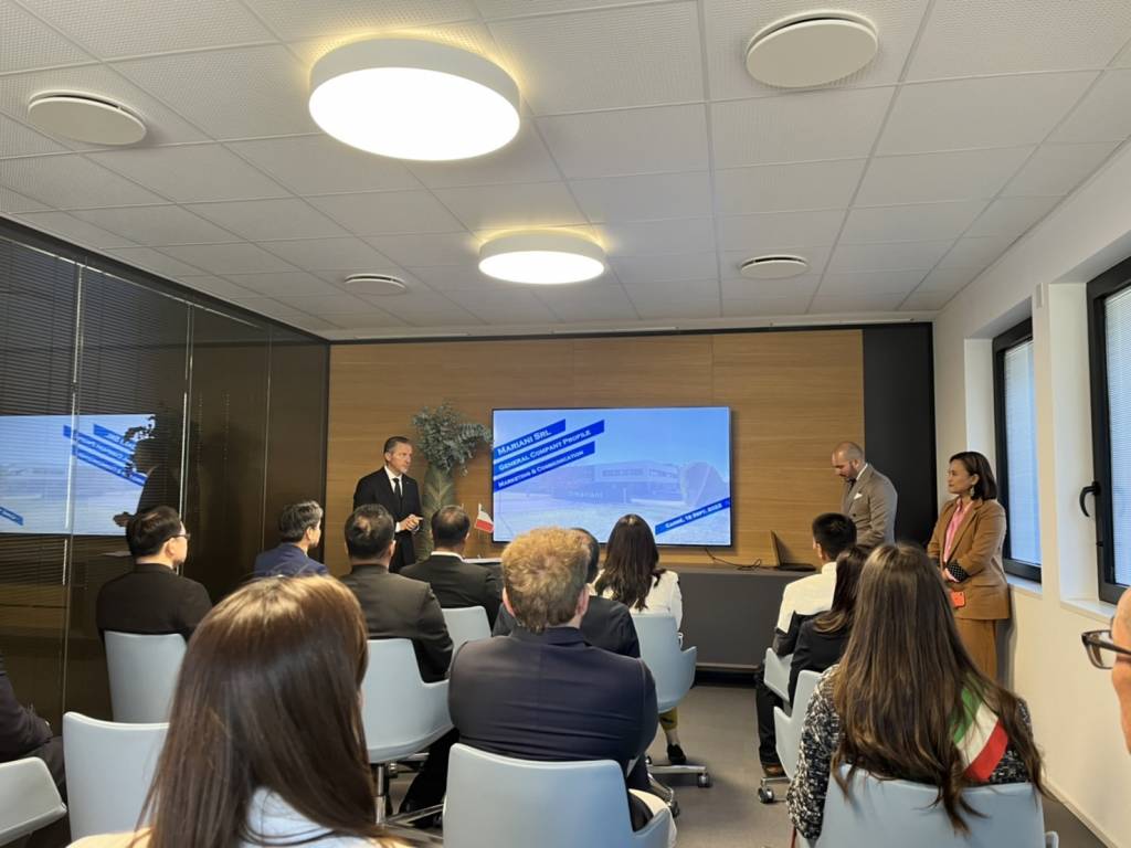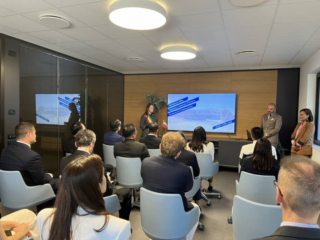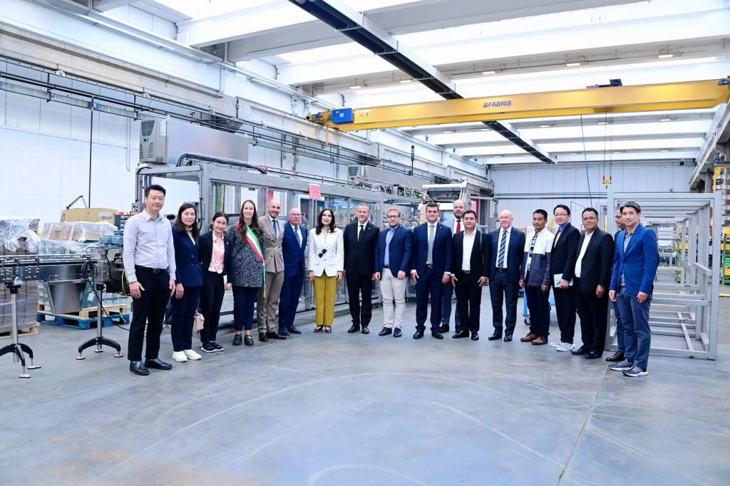 โอกาสนี้ บริษัท Mariani Srl. ได้เชิญ Mr. Erik Umberto Pretto รองวุฒิสภาอิตาลี (Camera dei Deputati) Mr. Roberto Ciambetti ประธานสภาแคว้นเวเนโต (Presidente del Consiglio Regionale Veneto) Mr.Giacomo Possamai สมาชิกสภาภูมิภาคเวเนโต (Consigliere Regionale Veneto) Ms. Valentina Maculan นายกเทศมนตรีเมืองแคร์เร (Sindaco Carrè) และ Mr. Roberto Mariani ผู้ช่วยนายกสภาอุตสาหกรรมการผลิตเมืองแคร์เร (Ass. Con delega alle attività productive Carrè) ร่วมต้อนรับคณะ และประชุมหารือแลกเปลี่ยนความคิดเห็นการพัฒนาอุตสาหกรรมการผลิต โดยใช้นวัตกรรมเพิ่มผลการผลิต ทดแทนการใช้สารเคมี อนุรักษ์สิ่งแวดล้อม เพื่อความเป็นอยู่ที่ดีของผู้บริโภค ซึ่งอิตาลีให้ความสำคัญกับการพัฒนาเทคโนโลยีและนวัตกรรมเพื่อการผลิตที่ยั่งยืน โดยบริษัท Marinani อิตาลี และ บริษัท เอส ไอ จี คอมบิบล็อค ประเทศไทย ได้ร่วมผลิตบรรจุภัณฑ์กล่องกระดาษปลอดเชื้อสำหรับอุตสาหกรรมเครื่องดื่ม ที่มีคุณภาพสูงซึ่งจะช่วยเก็บและยืดอายุอาหารสดได้เป็นเวลานาน