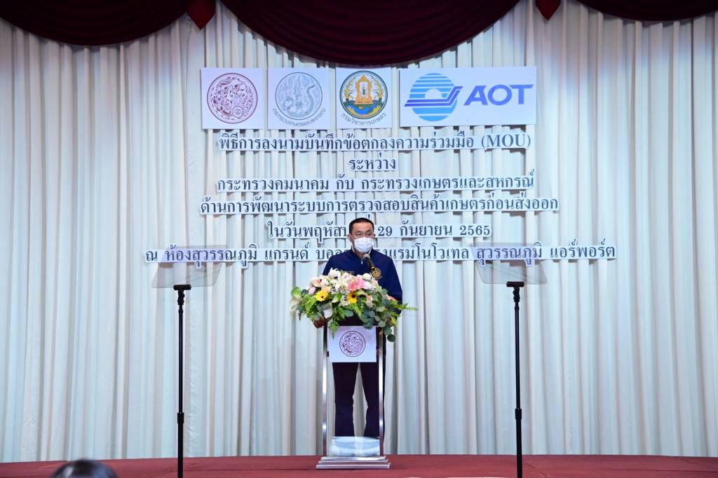 นายศักดิ์สยาม ชิดชอบ รัฐมนตรีว่าการกระทรวงคมนาคม กล่าวว่า กระทรวงคมนาคม และกระทรวงเกษตรและสหกรณ์ เล็งเห็นถึงความสำคัญของการพัฒนาระบบโลจิสติกส์เพื่อควบคุมคุณภาพและมาตรฐานสินค้าทางการเกษตร และสินค้าเน่าเสียง่ายของประเทศไทยให้เป็นที่ยอมรับของประเทศต่าง ๆ ทั่วโลก ตามแผนยุทธศาสตร์ชาติ 20 ปี ของรัฐบาลที่มุ่งเน้นการสร้างความสามารถในการแข่งขัน เพื่อให้ประเทศไทยสามารถพัฒนาไปสู่การเป็นฐานเศรษฐกิจแห่งอนาคต ผ่านการพัฒนาโครงสร้างพื้นฐาน สิ่งอำนวยความสะดวกด้านการคมนาคมขนส่งและการค้า และการพัฒนาระบบโลจิสติกส์ของประเทศ และสอดคล้องตามนโยบายของกระทรวงคมนาคมในการพัฒนาท่าอากาศยานภูมิภาคเป็นศูนย์กลางรวบรวมผลผลิต/กระจายสินค้าเกษตร หรือสินค้าเน่าเสียง่ายสู่ตลาด จึงร่วมกันจัดทำบันทึกข้อตกลงความร่วมมือ (MOU) ด้านการพัฒนาระบบการตรวจสอบสินค้าเกษตรก่อนส่งออก วัตถุประสงค์ เพื่อจัดตั้ง