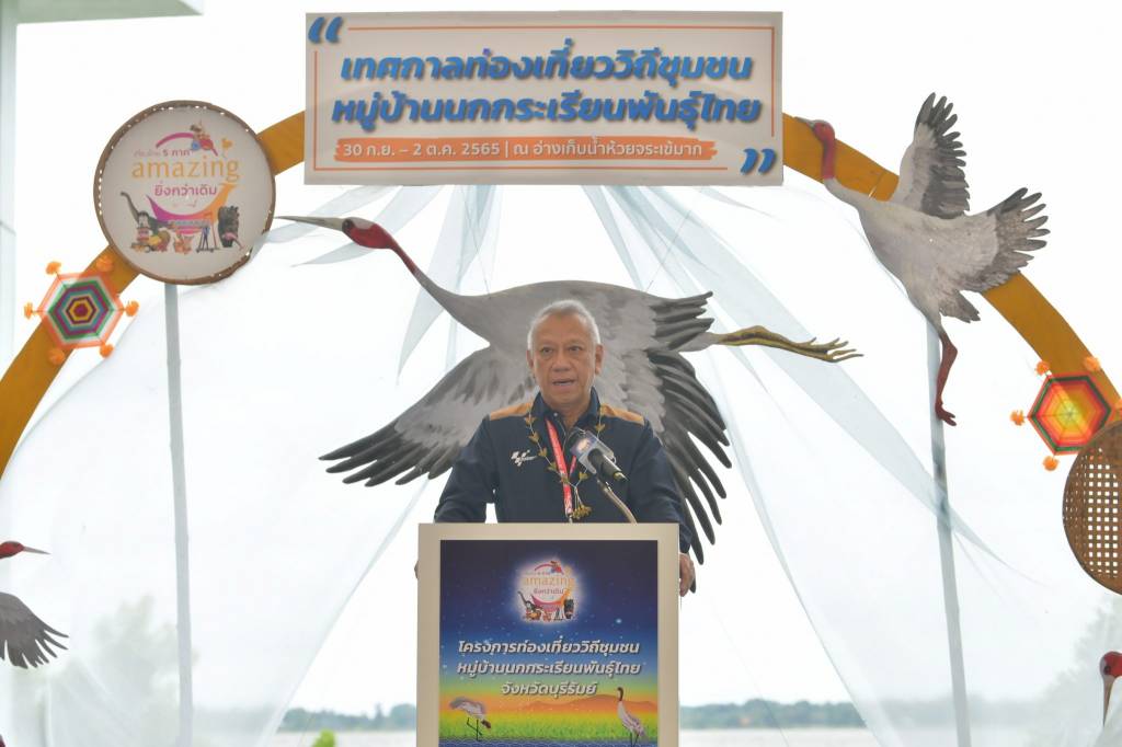 รมว.พิพัฒน์ เปิดเผยว่า ก่อนหน้านี้ ประเทศไทยได้รับเกียรติให้จัดงานโมโตจีพี และได้รับความนิยมจากนักท่องเที่ยวมากที่สุด 2 ปีซ้อน สำหรับปีที่ 3 นี้ กระทรวงการท่องเที่ยวและกีฬา ได้ใช้โอกาสสำคัญในการเผยแพร่ Solf Power ของประเทศไทย ให้เป็นที่รู้จักกับทั่วโลก ผ่านการจัดกิจกรรมต่างๆ ควบคู่ไปกับการจัดการแข่งขัน MOTO GP เพื่อให้นักท่องเที่ยวทั่วโลกได้มาสัมผัสความเป็นไทยตามแนวทาง สปอร์ตทัวร์ลิซึม ไม่ว่าจะเป็นการกินอาหารท้องถิ่นที่เป็นเอกลักษณ์ การเที่ยวสถานที่ต่างๆทั้งโบราณสถาน และแหล่งท่องเที่ยวแห่งใหม่ของจังหวัดบุรีรัมย์ การพักที่โฮมสเตย์ของชาวบ้าน สัมผัสวิถีชีวิตของคนไทย โดยเริ่มจากเทศกาลท่องเที่ยววิถีชุมชนหมู่บ้านนกกระเรียนพันธุ์ไทย เป็นต้นแบบในการพัฒนาวิถีชุมชนและเป็นแหล่งท่องเที่ยวที่ยั่งยืน ซึ่งนักท่องเที่ยวจะได้สัมผัสความเป็นไทยอย่างเต็มที่ก่อนวันที่ 2 ต.ค. 65 ซึ่งเป็นวันแข่งขันจริง โดยกิจกรรมในเทศกาลท่องเที่ยววิถีชุมชนหมู่บ้านนกกระเรียนพันธุ์ไทย มีกิจกรรมมากมาย ทั้ง กิจกรรมล่องเรือ ส่องนก ชมธรรมชาติ ดูพระอาทิตย์ตกดิน ที่อ่างเก็บน้ำห้วยจระเข้มาก, ที่พักโฮมสเตย์ ทำโฮมสปาภูมิปัญญาชาวบ้าน, เถียงนาเชฟเทเบิ้ล เมนูพื้นบ้านเลิศรส, ลานกางเต็นท์ สำหรับสายแคมป์ปิ้ง, และตลาดชุมชน ที่พ่อค้าแม่ค้าจะนำอาหารสินค้าท้องถิ่นมาจำหน่ายให้นักท่องเที่ยวในราคาไม่แพง