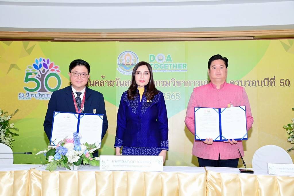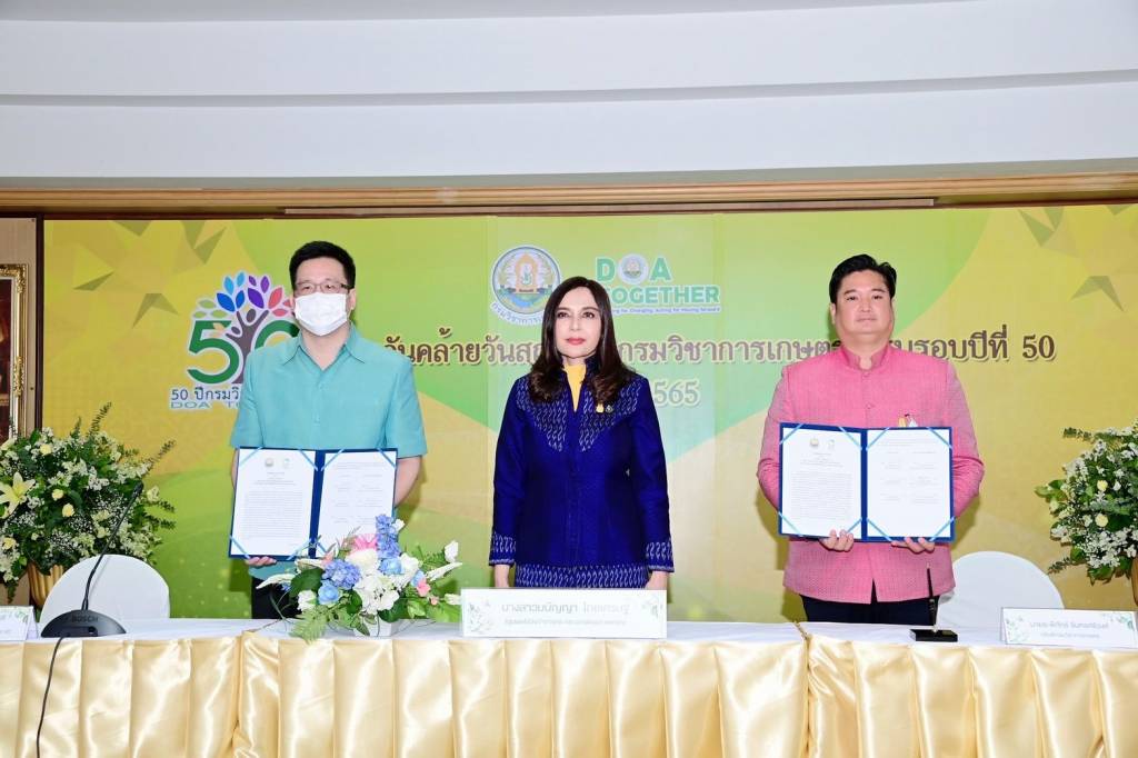 3 ตุลาคม 2565 เวลา 14:55รมช.มนัญญา ชื่นชมผลงานกรมวิชาการเกษตร ร่วมฉลอง 50 ปี พร้อมจับมือ 2 หน่วยงาน ลงนาม MOU ใหญ่ กัญชงกัญชา และก๊าซเรือนกระจกนางสาวมนัญญา ไทยเศรษฐ์ รัฐมนตรีช่วยว่าการกระทรวงเกษตรและสหกรณ์ เป็นประธานพิธีอ่านสารแสดงความยินดี เนื่องในโอกาสวันสถาปนากรมวิชาการเกษตร ครบรอบ 50 ปี โอกาสนี้ เป็นสักขีพยานพิธีลงนามบันทึกข้อตกลงความร่วมมือ (MOU) ด้านการพัฒนาโครงการที่เกี่ยวข้องกับการจัดการก๊าซเรือนกระจก ระหว่าง กรมวิชาการเกษตร กับ องค์การบริหารจัดการก๊าซเรือนกระจก (องค์การมหาชน) และพิธีลงนามบันทึกข้อตกลงความร่วมมือทางวิชาการ (MOU) เพื่อค้นคว้าวิจัยการเรียนการสอนการบริการวิชาการเกี่ยวกับกัญชา กัญชง เพื่อประโยชน์ในทางการแพทย์และเชิงพาณิชย์อย่างครบวงจร ระหว่าง กรมวิชาการเกษตร กับ จุฬาลงกรณ์มหาวิทยาลัย จากนั้น เยี่ยมชมนิทรรศการแสดงผลงานวิจัยและเทคโนโลยีของกรมวิชาการเกษตร ณ ห้องประชุม 314 ตึกกสิกรรม กรมวิชาการเกษตร แชร์บทความนี้: