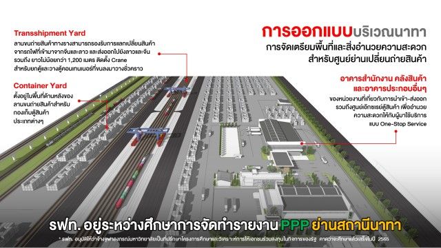 - ระยะยาว : การพัฒนาพื้นที่นาทาเพื่อเป็นศูนย์เปลี่ยนถ่ายสินค้าและย่านกองเก็บตู้สินค้า (เพื่อรองรับการขนส่งสินค้าในอนาคต) พัฒนาพื้นที่ย่านสถานีรถไฟนาทา จังหวัดหนองคาย ให้สามารถรองรับการขนส่งจากจีน - ลาว และส่งออกไปยัง สปป.ลาว ปัจจุบัน รฟท. อนุมัติให้ว่าจ้างจุฬาลงกรณ์มหาวิทยาลัย เป็นที่ปรึกษาโครงการศึกษาและวิเคราะห์การให้เอกชนร่วมลงทุนในกิจการของรัฐ โครงการศูนย์เปลี่ยนถ่ายสินค้าและย่านกองเก็บตู้สินค้าเพื่อรองรับการขนส่งทางรางจังหวัดหนองคาย โดยคาดว่าจะศึกษาแล้วเสร็จในปี 2565