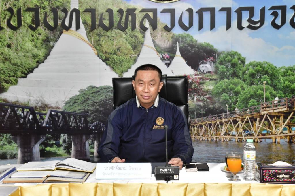 นายศักดิ์สยาม ชิดชอบ กล่าวว่า ตามนโยบายของพลเอก ประยุทธ์ จันทร์โอชา นายกรัฐมนตรี ที่มุ่งมั่นพัฒนาระบบการคมนาคมขนส่งทั้งทางบก ทางราง ทางน้ำ และทางอากาศให้ครอบคลุมทั่วถึงทุกพื้นที่และสามารถเชื่อมโยงไปยังประเทศต่าง ๆ ในภูมิภาค เพื่อให้ประชาชนมีความสะดวกและปลอดภัยในการเดินทางและขนส่งสินค้าให้ผู้ที่อยู่ห่างไกลสามารถเข้าถึงโครงสร้างพื้นฐานและการให้บริการด้านคมนาคมขนส่งอย่างเท่าเทียม เพื่อคุณภาพชีวิตที่ดี สร้างงาน สร้างรายได้ ประชาชนมีความสุข จึงได้มอบหมายให้หน่วยงานในสังกัดกระทรวงฯ ดำเนินการพัฒนาโครงข่ายคมนาคมขนส่งที่สำคัญทุกโหมดการเดินทางในพื้นที่จังหวัดกาญจนบุรี ดังนี้