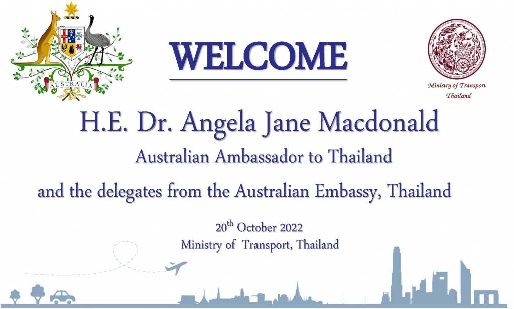 โดยเอกอัครราชทูตออสเตรเลียประจำประเทศไทย ยืนยันในความมุ่งมั่นที่จะสานต่อความร่วมมือกับรัฐบาลไทยในทุกด้าน ทั้งในระดับ ทวิภาคี พหุภาคี อนุภูมิภาคลุ่มน้ำโขง ภูมิภาคอาเซียน และภูมิภาคอินโด - แปซิฟิก โดยเฉพาะอย่างยิ่งการร่วมมือกันพัฒนาระบบการคมนาคมขนส่งที่ยั่งยืนเพื่อลดผลกระทบต่อสภาวะโลกร้อน