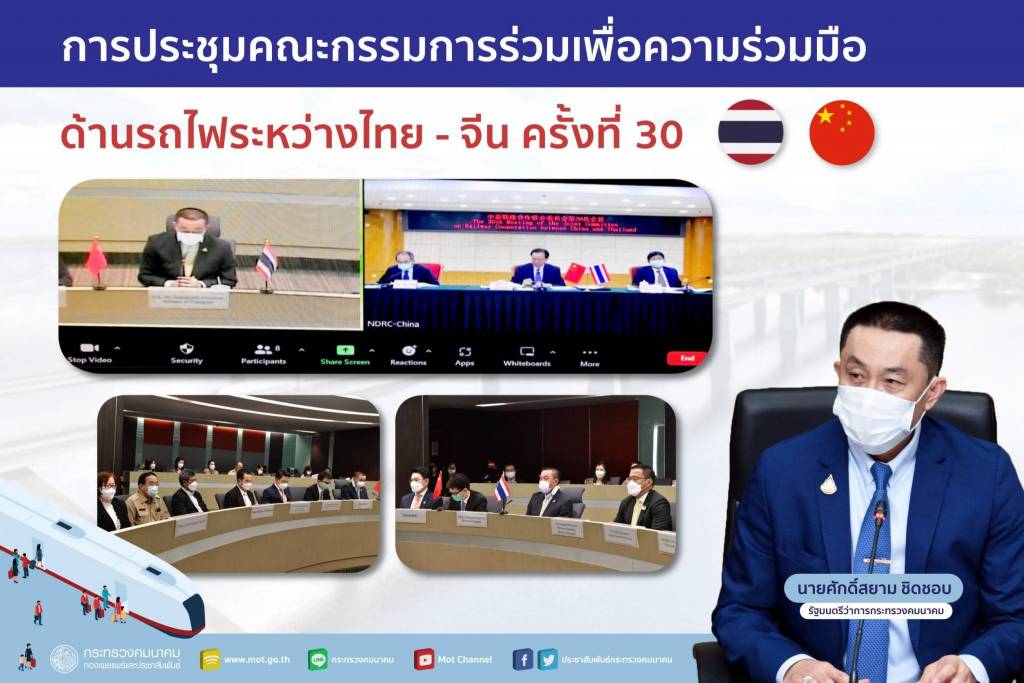 นายศักดิ์สยาม ชิดชอบ รัฐมนตรีว่าการกระทรวงคมนาคมแห่งราชอาณาจักรไทย และนายหลิน เนี่ยนซิว รองประธานคณะกรรมการพัฒนาและปฏิรูปแห่งชาติสาธารณรัฐประชาชนจีน (NDRC) เป็นประธานร่วมการประชุมคณะกรรมการร่วมเพื่อความร่วมมือด้านรถไฟระหว่างไทย-จีน ครั้งที่ 30 ซึ่งจัดขึ้นใน รูปแบบการประชุมทางไกล โดยมีผู้บริหารระดับสูงของกระทรวงคมนาคม กรมการขนส่งทางราง กรมทางหลวง สำนักงานนโยบายและแผนการขนส่งและจราจร การรถไฟแห่งประเทศไทย และหน่วยงานที่เกี่ยวข้อง เช่น กระทรวงการต่างประเทศ สำนักงานสภาพัฒนาการเศรษฐกิจและสังคมแห่งชาติ สำนักงานอัยการสูงสุด สำนักงานคณะกรรมการกฤษฎีกา และสำนักงานพัฒนาวิทยาศาสตร์และเทคโนโลยีแห่งชาติ เข้าร่วมการประชุม เมื่อวันที่ 7 พฤศจิกายน 2565