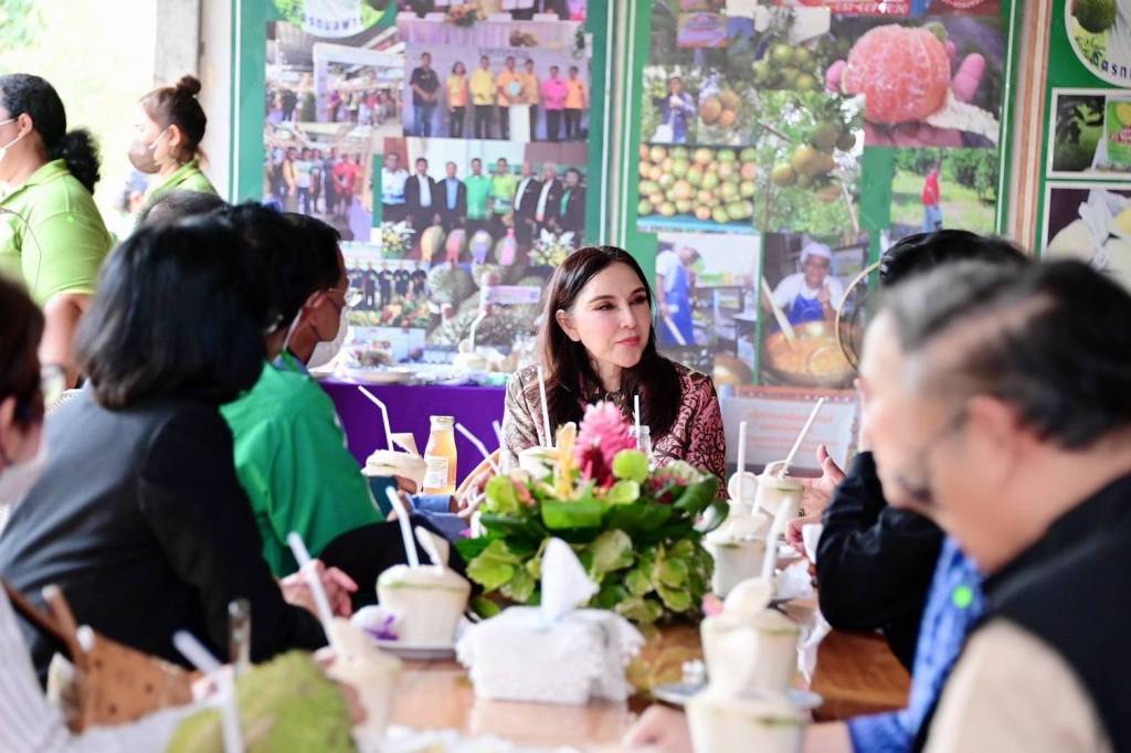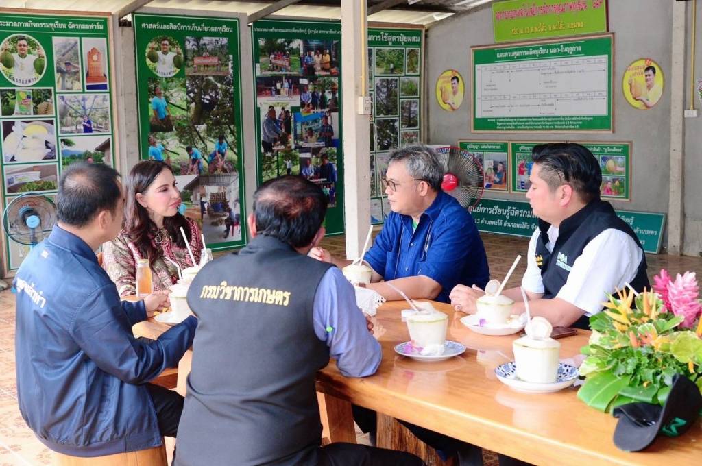 10 พฤศจิกายน 2565 เวลา 18:00รมช.กษ.มนัญญา ไทยเศรษฐ์ ลงพื้นที่ติดตามนโยบายการผลิตทุเรียนคุณภาพเพื่อส่งออก ในพื้นที่ภาคใต้ตอนบน จ.ชุมพร นอกจากนี้ได้ร่วมเสวนาและรับฟังปัญหาทุเรียน ที่ อ.พะโต๊ะ จ. ชุมพรนางสาวมนัญญา ไทยเศรษฐ์ รัฐมนตรีช่วยว่าการกระทรวงเกษตรและสหกรณ์ ลงพื้นที่ติดตามนโยบายการผลิตทุเรียนคุณภาพเพื่อส่งออก ในพื้นที่ภาคใต้ตอนบน จ.ชุมพร พร้อมด้วย นายระพีภัทร์ จันทรศรีวงศ์ อธิบดีกรมวิชาการเกษตร นายภัสชญภณ หมื่นแจ้ง รองอธิบดีกรมวิชาการเกษตร ผู้บริหารกระทรวงเกษตรและสหกรณ์ โดยเยี่ยมชมสวนทุเรียนฉัตรกมลฟาร์ม ของนายฉัตรกมล มุ่งพยาบาล ที่ได้รับการรับรองมาตรฐานการผลิต GAP จากกรมวิชาการเกษตร พร้อมพบปะเกษตรกรเครือข่ายทุเรียนแปลงใหญ่ และมอบใบรับรองมาตรฐานการผลิต GAP ทุเรียน ให้กับตัวแทนเกษตรกรรวม 320 ราย 345 แปลง พื้นที่ 2,877.35 ไร่ ณ สวนทุเรียนฉัตรกมลฟาร์ม ต.พระรักษ์ อ.พะโต๊ะ จ.ชุมพร แชร์บทความนี้: