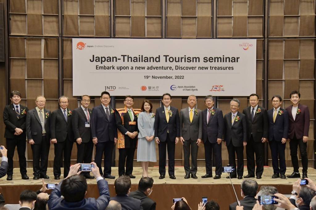 นายฟูมิโอะ คิชิดะ นายกรัฐมนตรีญี่ปุ่น ย้ำถึงความพร้อมในการต้อนรับนักท่องเที่ยวต่างชาติเพิ่มเติมว่า “กระผมรู้สึกยินดีเป็นอย่างยิ่งที่มีโอกาสมาพบกับทุกท่านหลังจากช่วงเวลาอันยากลำบากที่เราไม่สามารถเดินทางไปมาหาสู่กันได้ ในที่สุด ขณะนี้โลกได้ก้าวเข้าสู่ยุคใหม่ที่ต้องใช้ชีวิตร่วมกับโควิด-19 ประเทศญี่ปุ่นจึงได้ริเริ่มโครงการฟื้นฟูการท่องเที่ยวที่เรียกว่า “Open the Treasure of Japan!” เรานำเสนอประสบการณ์สุดพิเศษต่างๆ อาทิเช่น การเปิดพื้นที่ส่วนพิเศษภายในปราสาทฮิเมจิ แหล่งมรดกโลกทางวัฒนธรรมที่ตามปกติไม่ได้เปิดให้เข้าเยี่ยมชม เทศกาลหิมะซัปโปโรที่จะกลับมาจัดอย่างยิ่งใหญ่ในรอบ 3 ปี ระหว่างวันที่ 4-11 กุมภาพันธ์ 2566 รวมถึงกำแพงหิมะทาเตยามะที่สูงถึง 15 เมตรที่รอทุกท่านมาสัมผัสประสบการณ์และเสน่ห์แห่งฤดูหนาวของญี่ปุ่น กระผมคาดหวังให้การท่องเที่ยวของทั้งไทยและญี่ปุ่นฟื้นฟูกลับสู่ปกติโดยเร็วและผมรอคอยที่จะได้พบกับทุกท่านที่ญี่ปุ่นครับ”