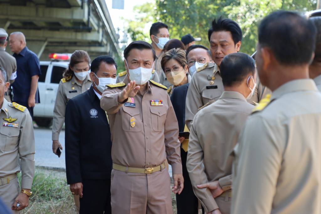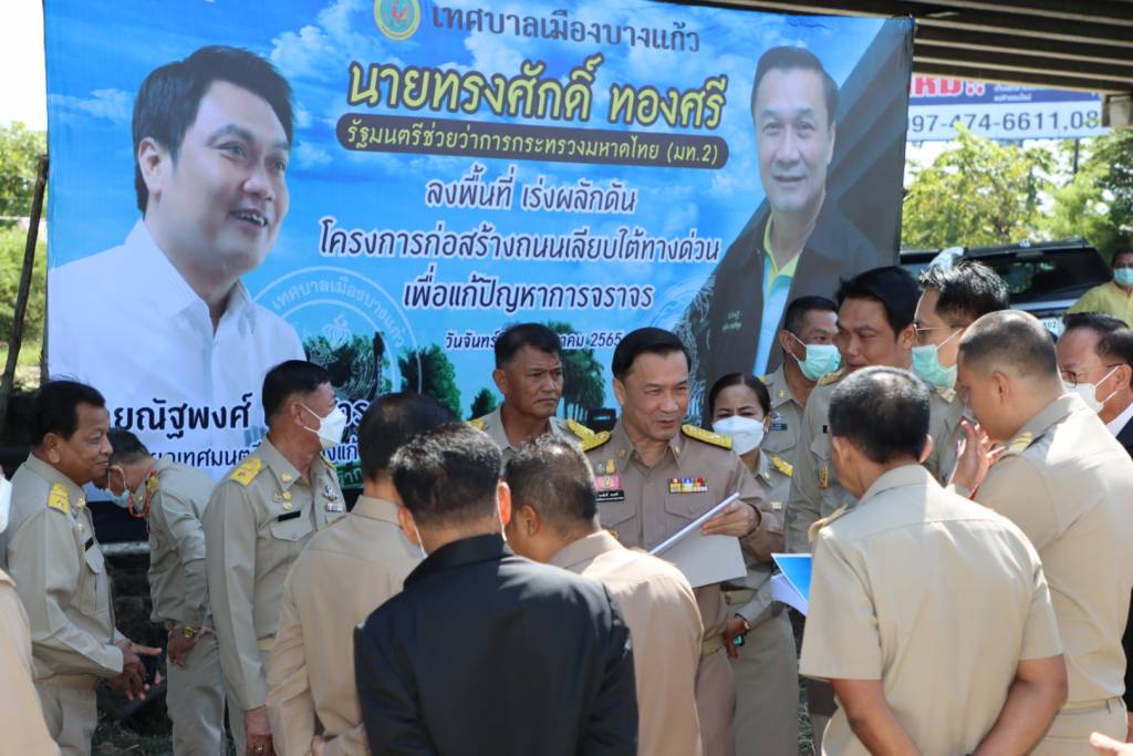 จากนั้น เวลา 12.00 น. รมช.มท. ได้เดินทางลงตรวจสอบสถานที่ โครงการก่อสร้างถนนเลียบใต้ทางด่วน เพื่อแก้ปัญหาการจราจร ของเทศบาลตำบลบางแก้ว ซึ่งได้พิจารณาแล้วว่าเป็นปัญหาที่มีความเร่งด่วนหากเร่งรัดให้สามารถดำเนินการได้จะถือเป็นเส้นทางสัญจรที่ช่วยระบายการจราจรจากเส้นทางสายหลักได้เป็นอย่างดี โดยมี นายศุภมิตร ชิณศรี ผู้ว่าราชการจังหวัดสมุทรปราการ , นายณัฐพงศ์ แตงสุวรรณ นายกเทศมนตรีเมืองบางแก้ว, นายบวรวิทย์ พึ่งทอง ประธานสภาเทศบาล, คณะผู้บริหาร, สมาชิกสภา, หัวหน้าส่วนราชการ และพนักงานเทศบาล ร่วมลงพื้นที่และให้ข้อมูล ณ ถนนเลียบใต้ทางด่วน บริเวณถนนบัวนครินทร์ หมู่ที่ 8 อำเภอบางพลี จังหวัดสมุทรปราการ
