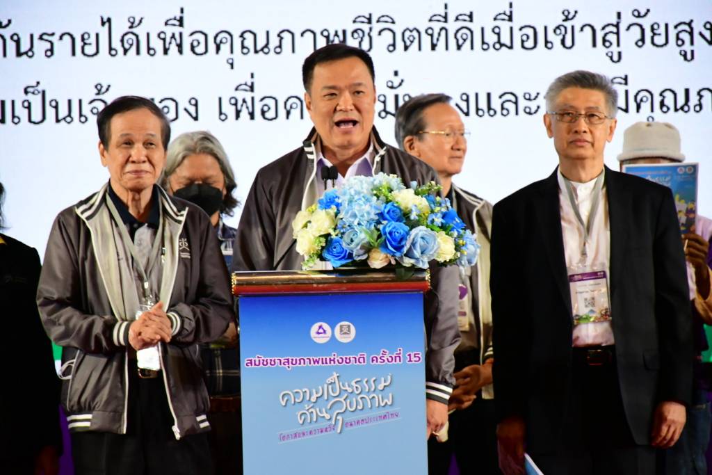 เราต้องสร้างความเป็นธรรม เท่าเทียม ในการดูแลสุขภาพให้คนไทยทุกคน แนวทางนี้ กระทรวงสาธารณสุขร่วมกับเครือข่ายต่างๆ ดำเนินมาอย่างต่อเนื่อง เราได้หารือกันว่า สำหรับพี่น้องประชาชน เรามุ่งหวังให้มีสุขภาพแข็งแรง ช่วยเหลือตัวเองได้ ไม่เป็นภาระคนรอบข้าง ทุกเครือข่ายต้องช่วยเหลือกัน สปสช.เรามีงบเพียงพอในการดูแลปัญหาสุขภาพ กระทรวงสาธารณสุข เตรียมพร้อมในการให้บริการ การดูแล ใช้หน่วยงานในสังกัด ผลักดันเรื่องการสร้างเสรมดูแลสุขภาพ เรากำลังจะต้องเจอความท้าทายใหม่ เช่นการเข้าสู่สังคมผู้สูงอายุ ซึ่งถึงตอนนั้น เป้าหมายของเราคือ ต่อให้เป็นผู้สูงอายุ ก็สามารถจัดการตัวเองได้ รัฐต้องเข้าไปสนับสนุน