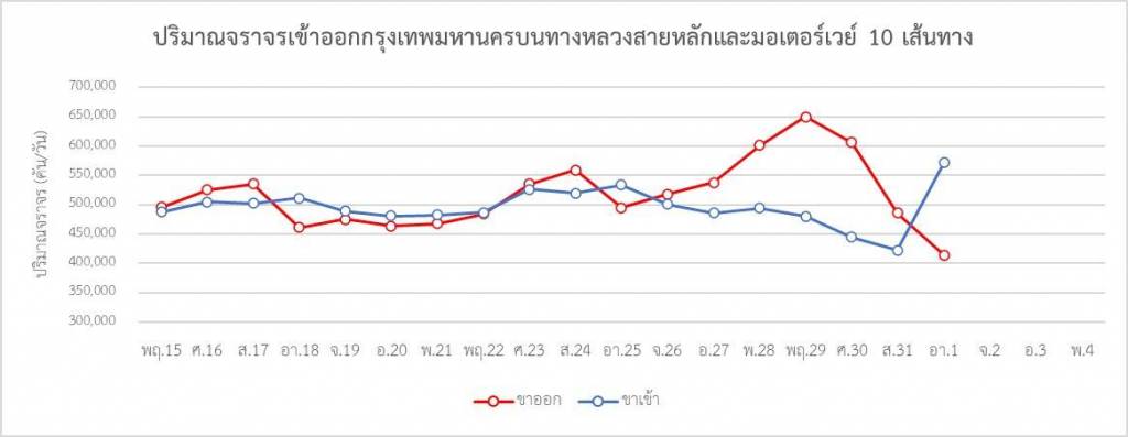 นายสราวุธ ทรงศิวิไล อธิบดีกรมทางหลวง เปิดเผยว่า นายศักดิ์สยาม ชิดชอบ รัฐมนตรีว่าการกระทรวงคมนาคม มีความห่วงใยประชาชนที่ได้เริ่มทยอยเดินทางกลับเข้ากรุงเทพมหานครในระหว่างวันที่ 1 – 4 มกราคม 2566 หลังจากเดินทางกลับจากภูมิลำเนาและท่องเที่ยวในช่วงวันหยุดยาวช่วงเทศกาลปีใหม่ 2566 จึงมอบนโยบายทุกหน่วยงานในสังกัดกระทรวงคมนาคมเตรียมพร้อมรองรับการเดินทางกลับของประชาชน เน้นพิเศษเพิ่มความสะดวก รวดเร็ว และปลอดภัย ขั้นสูงสุด เพื่อลดการสูญเสียทั้งชีวิตและทรัพย์สิน โดยสำนักอำนวยความปลอดภัยคาดการณ์ว่าในวันที่ 2 มกราคม 2566 ซึ่งเป็นวันหยุดสุดท้ายของเทศกาลปีใหม่ 2566 จะมีปริมาณจราจรขาเข้ากรุงเทพมหานครบนทางหลวงสายหลักและ มอเตอร์เวย์ 10 เส้นทางรวมทั้งสิ้น 649,897 คัน สำหรับช่วงระหว่างวันที่ 29 ธันวาคม 2565 - 1 มกราคม 2566 มีจำนวนปริมาณจราจรเข้าและออกกรุงเทพมหานคร รวมทั้งสิ้น 4,074,129 คัน โดยแบ่งเป็นฝั่งขาเข้าจำนวน 1,917,727 คัน และฝั่งขาออกจำนวน 2,156,402 คัน จึงขอให้ประชาชนวางแผนการเดินทาง ติดตามข่าวสาร ตรวจสอบความพร้อมของรถก่อนเดินทาง