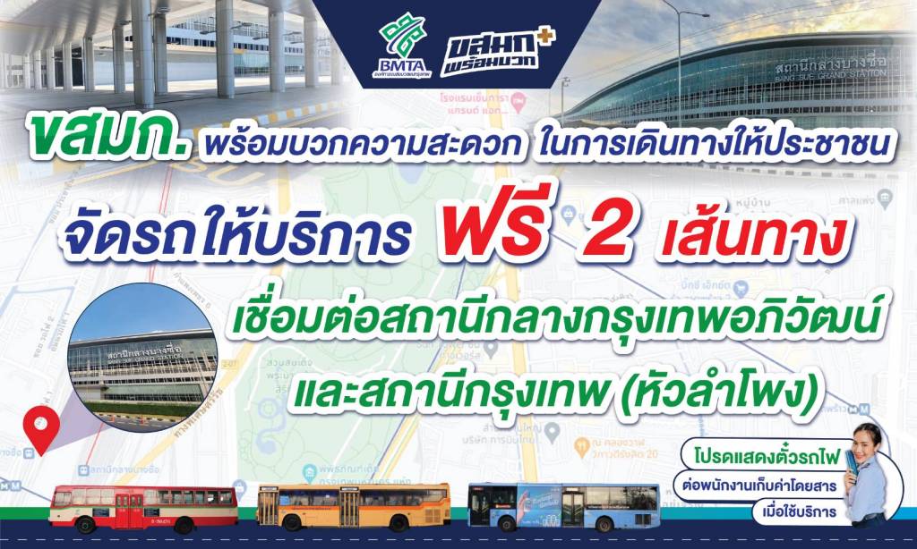 2) จัดเดินรถโดยสาร ตั้งแต่เวลา 04.30 - 23.00 น. ปล่อยรถคันแรกจากสถานีกลางกรุงเทพอภิวัฒน์ และสถานีรถไฟกรุงเทพ (หัวลำโพง) เวลา 04.30 น. มีความถี่ในการปล่อยรถทุก 15 นาที ในช่วงเวลาเร่งด่วน (04.30 - 10.00 น. และ 16.00 - 18.00 น.) ส่วนช่วงเวลาปกติมีความถี่ในการปล่อยรถทุก 30 นาที ทั้งนี้ เฉพาะวันที่ 19 มกราคม 2566 จัดเดินรถโดยสารตั้งแต่เวลา 12.00 - 23.00 น.
