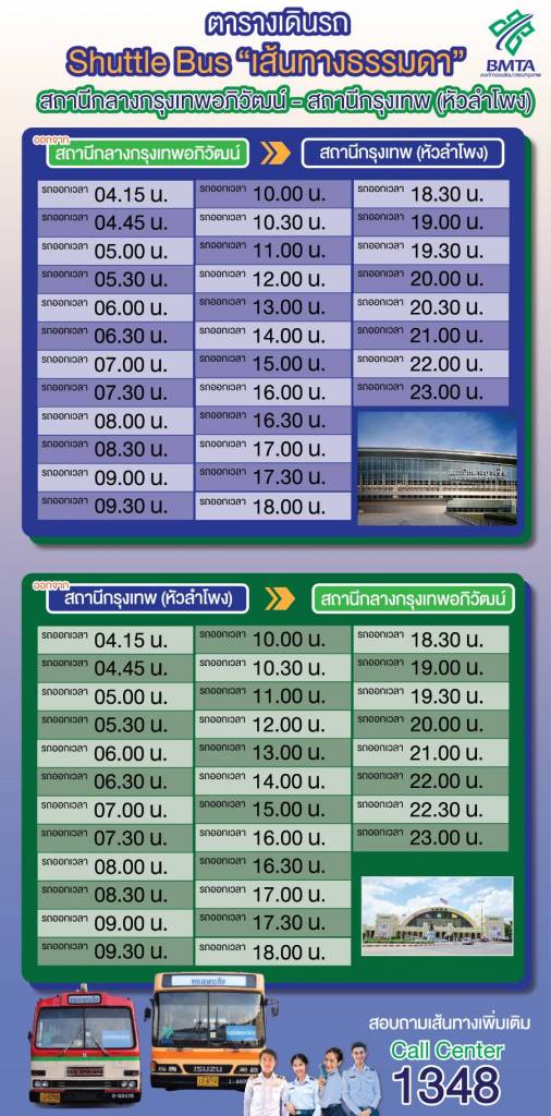 1) จัดรถโดยสารธรรมดา และรถโดยสารปรับอากาศยูโรทู จำนวน 10 คัน โดยมีท่าต้นทาง 2 แห่ง คือ สถานีกลางกรุงเทพอภิวัฒน์ และสถานีรถไฟกรุงเทพ (หัวลำโพง)
