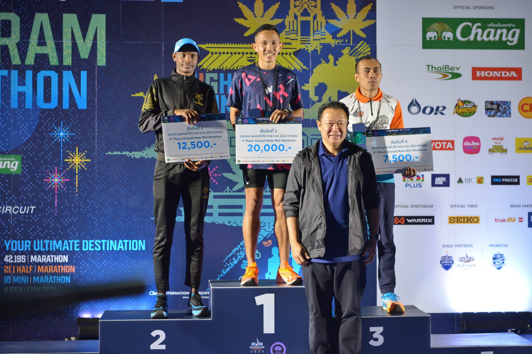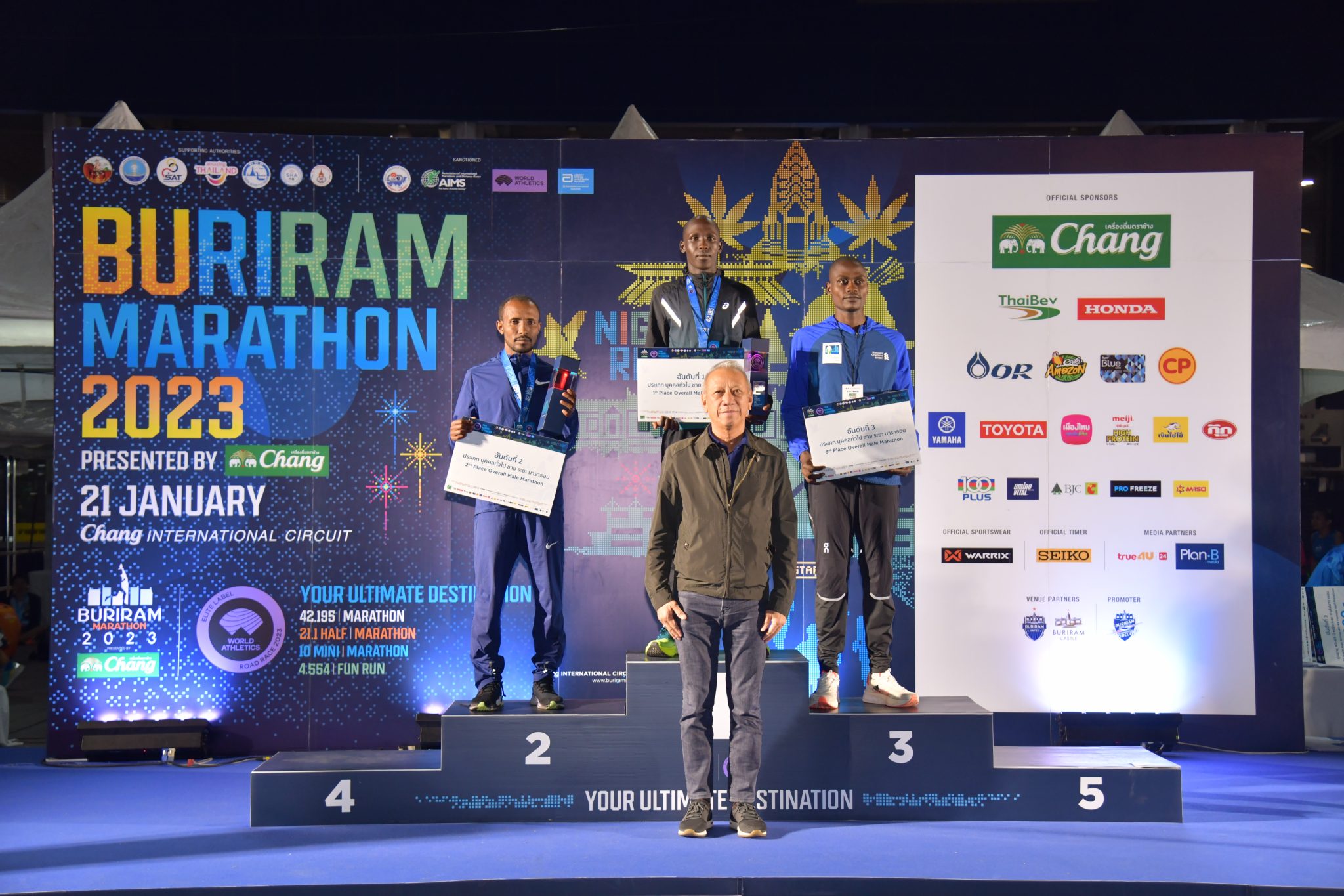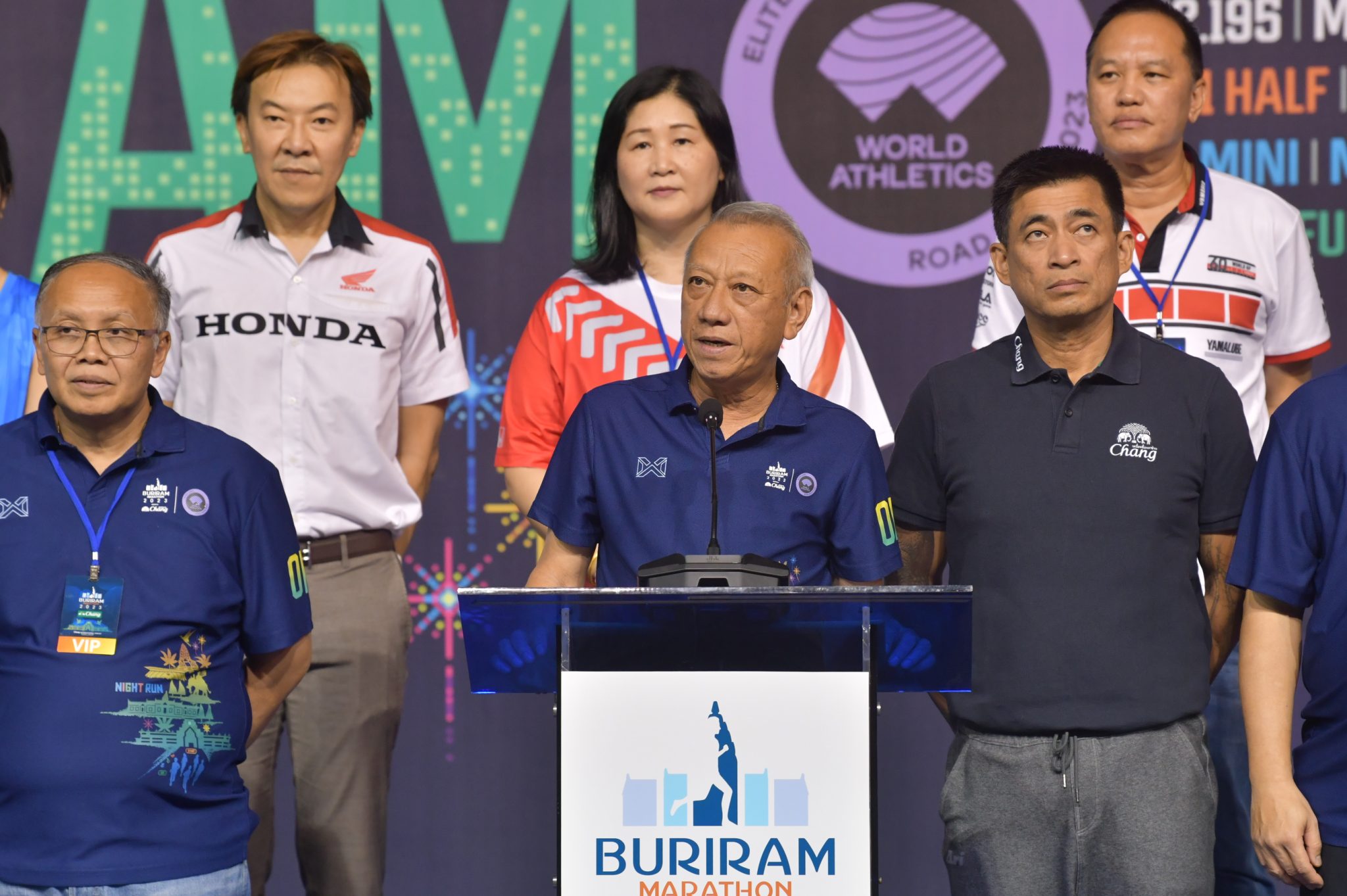 รมว.กก. กล่าวว่า “ขอต้อนรับนักวิ่งทุกท่านเข้าสู่งานบุรีรัมย์มาราธอน 2023 สวรรค์ของนักวิ่ง ซึ่งเดินทางมาถึงปีที่ 7 แล้ว สิ่งนี้แสดงให้เห็นถึงศักยภาพของคนบุรีรัมย์ที่ร่วมแรงร่วมใจทุกภาคส่วน เพื่อให้บุรีรัมย์มาราธอน เป็นงานไนท์รันที่สนุกและดีที่สุดในประเทศไทย การประดับไฟ แสง สี เสียง สว่างไสวไปทั้งจังหวัด ความยิ่งใหญ่ของกองเชียร์ ตลอดเส้นทาง 42.195 กิโลเมตร ซึ่งไม่มีที่ไหนในโลกทำได้ ถือเป็นผลงานระดับโลกของคนเล็ก หัวใจใหญ่ เหล่าเซราะกราวฮีโร่ คนบุรีรัมย์อย่างแท้จริง สำหรับสิ่งพิเศษในปีนี้ หลังจากที่ทั่วโลกได้ผ่อนคลายจากสถานการณ์โควิด-19 และมีการเปิดประเทศให้มีการไปมาหาสู่กันตามปกติแล้วทางสหพันธ์สมาคมกรีฑา นานาชาติ หรือ World Athletics ได้อนุญาตให้มีการเชิญเหล่าอีลิทชั้นนำจากทั่วโลก ที่ได้รับการจัดอันดับอยู่ใน World Ranking ให้มาร่วมงานวิ่งบุรีรัมย์มาราธอนได้ นั่นหมายความว่า ในปีนี้จังหวัดบุรีรัมย์ จะได้มีโอกาสต้อนรับเหล่าอีลิทฝีเท้าระดับแถวหน้าจากทั่วโลก รวมถึงเหล่านักวิ่งต่างชาติ และนักวิ่งต่างชาติที่อาศัยอยู่ในประเทศไทย รวมแล้วไม่ต่ำกว่า 1,000 คน จากทั้งหมด 46 ชาติ ที่เข้าร่วมแข่งขันบุรีรัมย์มาราธอน ด้วยมาตรฐานการจัดงานที่เราเตรียมการในระดับ Gold Label ประกอบกับ การมีนักวิ่งอีลิทที่ได้รับการรับรองจาก World Athletics เข้าร่วมแข่งขัน กระทรวงการท่องเที่ยวและกีฬา และชาวจังหวัดบุรีรัมย์ทุกคน มุ่งหวังเป็นอย่างยิ่งว่าเราจะเป็นงานวิ่งงานแรก และงานเดียวของประเทศไทย ที่ได้รับการรับรองให้เป็นมาราธอนระดับเหรียญทอง หรือ Gold Label ให้ได้ในปีนี้ หลังจากที่ World Athletics ได้หยุดการมอบเหรียญให้กับงานวิ่งทั่วโลกมาแล้วถึง 3 ปี ผมมั่นใจว่า บุรีรัมย์มาราธอน จะพัฒนาเป็นหนึ่งใน Sport Tourism Destination ที่นักวิ่งทั่วโลกหวังอยากจะมาร่วมแข่งขันสักครั้งในชีวิต ด้วยการผสมผสานองค์ประกอบการจัดงานที่ได้มาตรฐานระดับโลก การต้อนรับที่อบอุ่นของกองเชียร์ชาวบุรีรัมย์ การดูแลอย่างดีจากเหล่าแพทย์พยาบาล และอาสาสมัครที่คอยดูแลตลอดเส้นทางจนถึงนักวิ่งคนสุดท้ายที่เข้าเส้นชัย