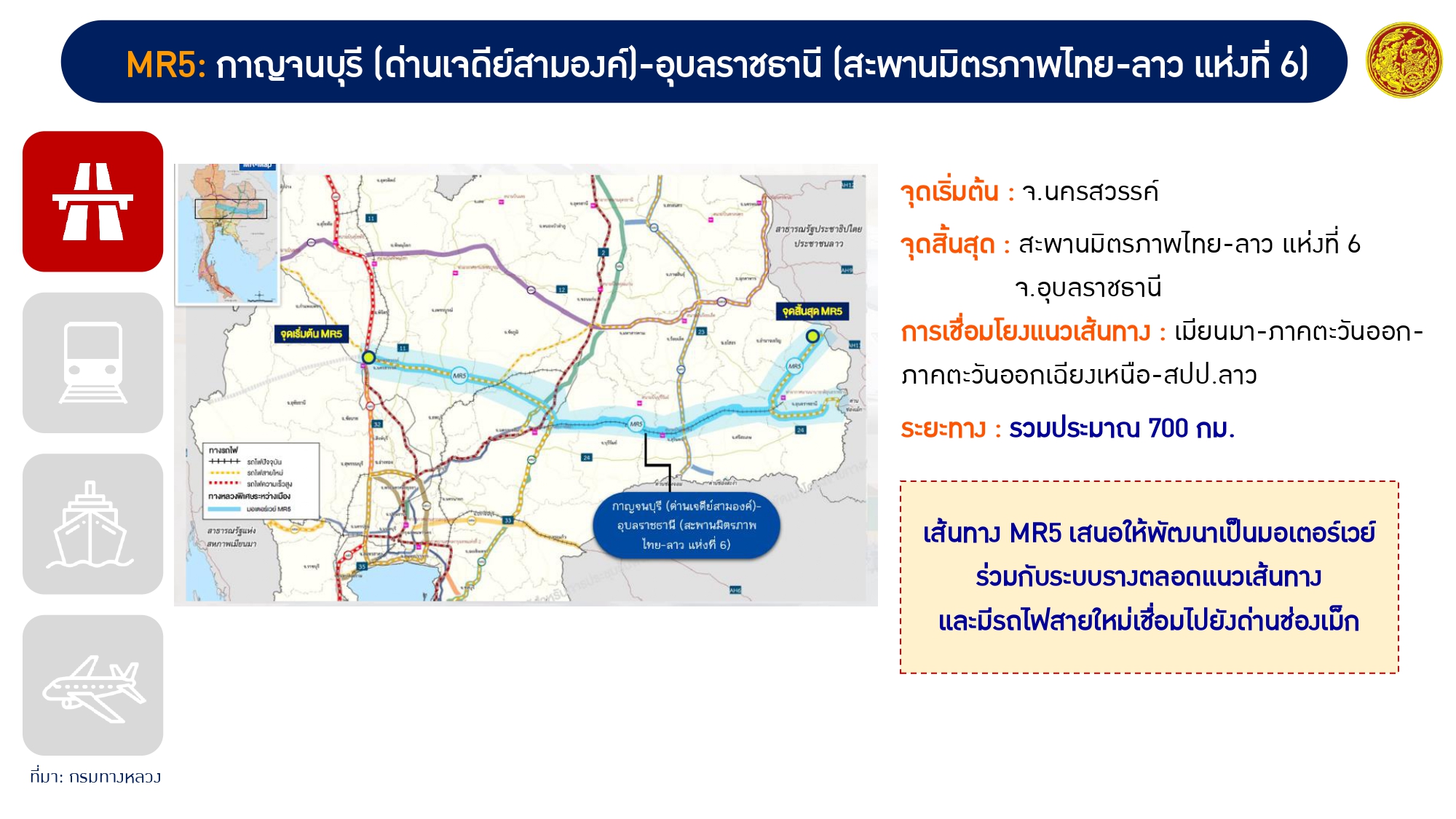 3. แผนแม่บทการพัฒนาโครงข่ายเชื่อมโยงระหว่างภูมิภาค MR-MAP