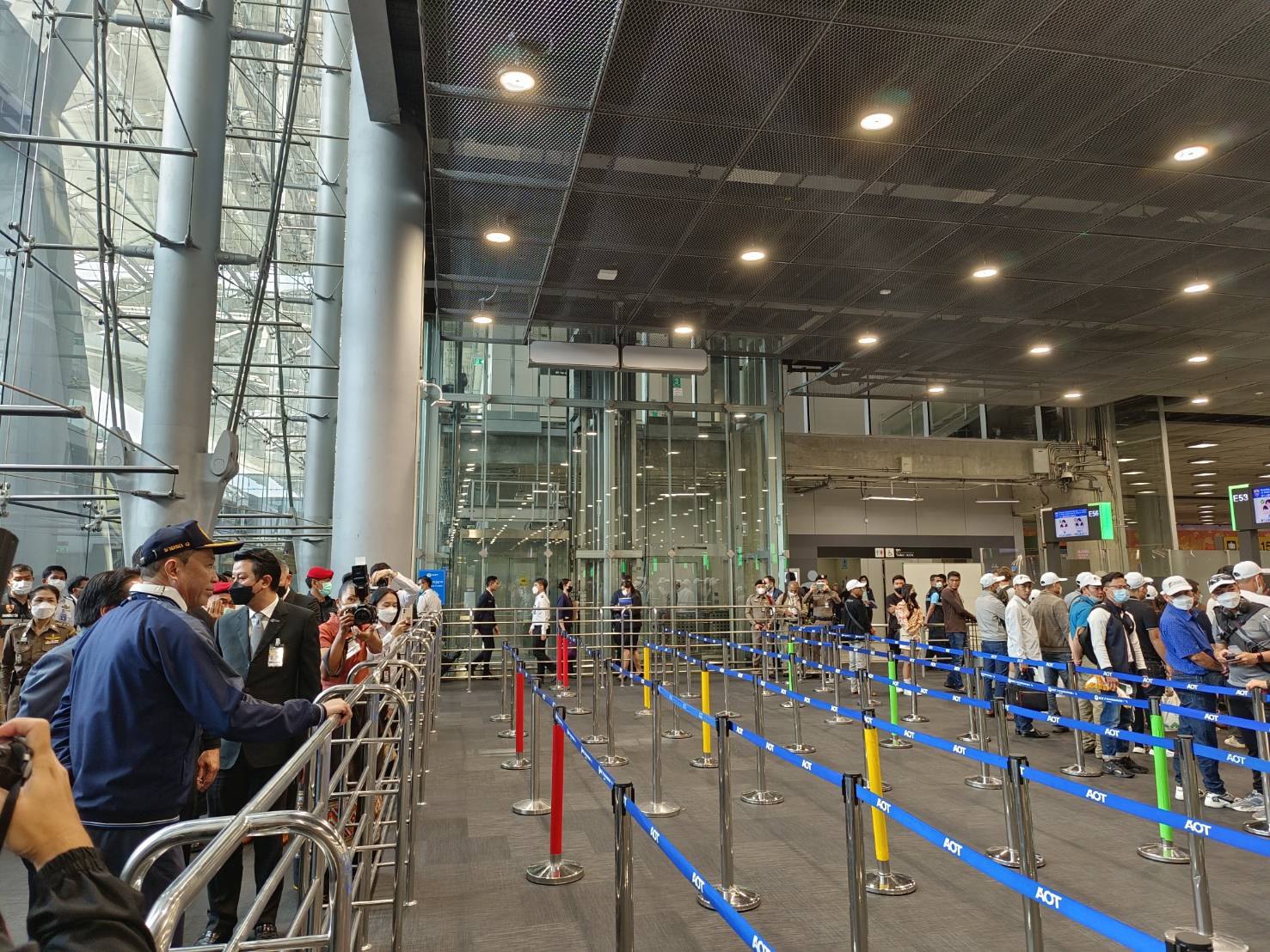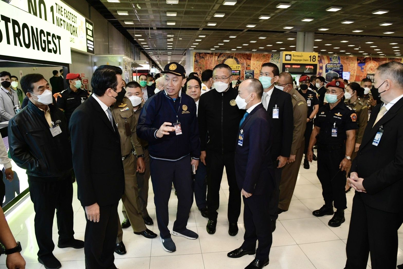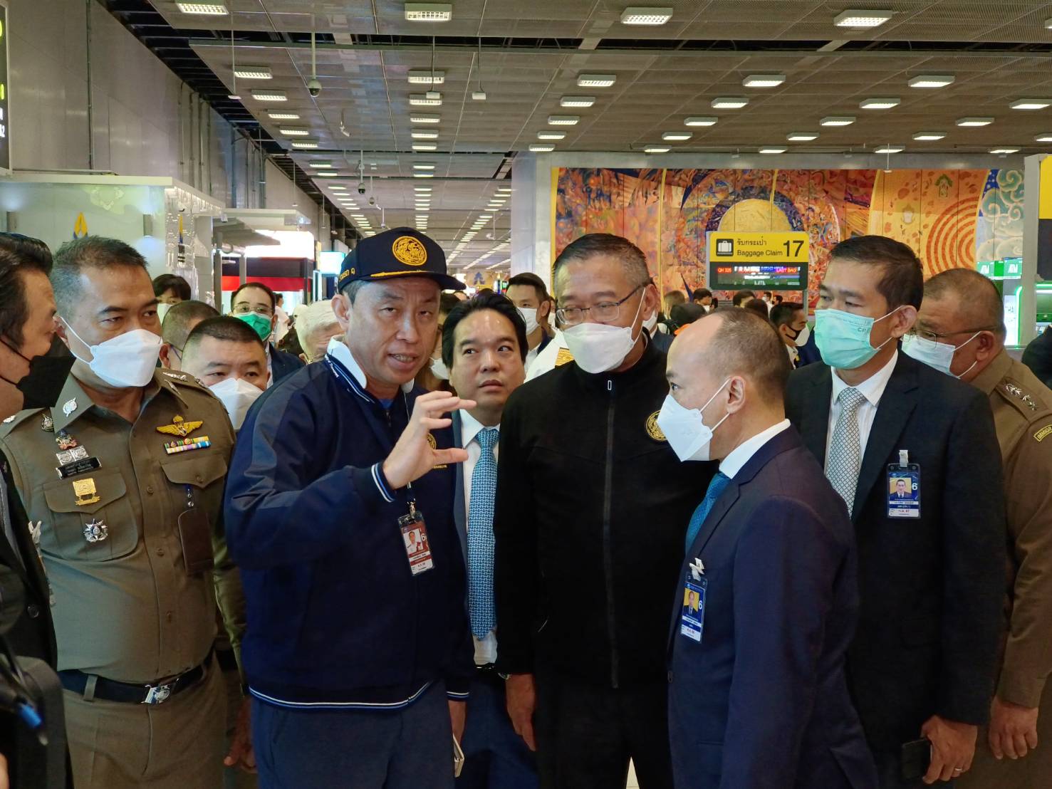 นายศักดิ์สยาม ชิดชอบ รัฐมนตรีว่าการกระทรวงคมนาคม ตรวจเยี่ยมและติดตามข้อสั่งการการอำนวยความสะดวกผู้โดยสารภายหลังสาธารณรัฐประชาชนจีนเปิดประเทศ และติดตามความคืบหน้าการแก้ไขปัญหาการขนถ่ายกระเป๋าสัมภาระล่าช้า โดยมี นางสุขสมรวย วันทนียกุล เลขานุการรัฐมนตรีว่าการกระทรวงคมนาคม นายชยธรรม์ พรหมศร ปลัดกระทรวงคมนาคม นายพิศักดิ์ จิตวิริยะวศิน รองปลัดกระทรวงคมนาคม นายสรพงศ์ ไพฑูรย์พงษ์ รองปลัดกระทรวงคมนาคม นายองอาจ ฉัตรชัยพลรัตน์ โฆษกประจำรัฐมนตรีว่าการกระทรวงคมนาคม นายนิตินัย ศิริสมรรถการ กรรมการผู้อำนวยการใหญ่ บริษัท ท่าอากาศยานไทย จำกัด (มหาชน) (ทอท.) นายกีรติ กิจมานะวัฒน์ รองกรรมการผู้อำนวยการใหญ่ ทอท. นายกิตติพงศ์ กิตติขจร ผู้อำนวยการท่าอากาศยานสุวรรณภูมิ และผู้บริหารระดับสูงหน่วยงานในสังกัดและหน่วยงานที่เกี่ยวข้อง ร่วมต้อนรับ ในวันที่ 9 กุมภาพันธ์ 2566 ณ ท่าอากาศยานสุวรรณภูมิ