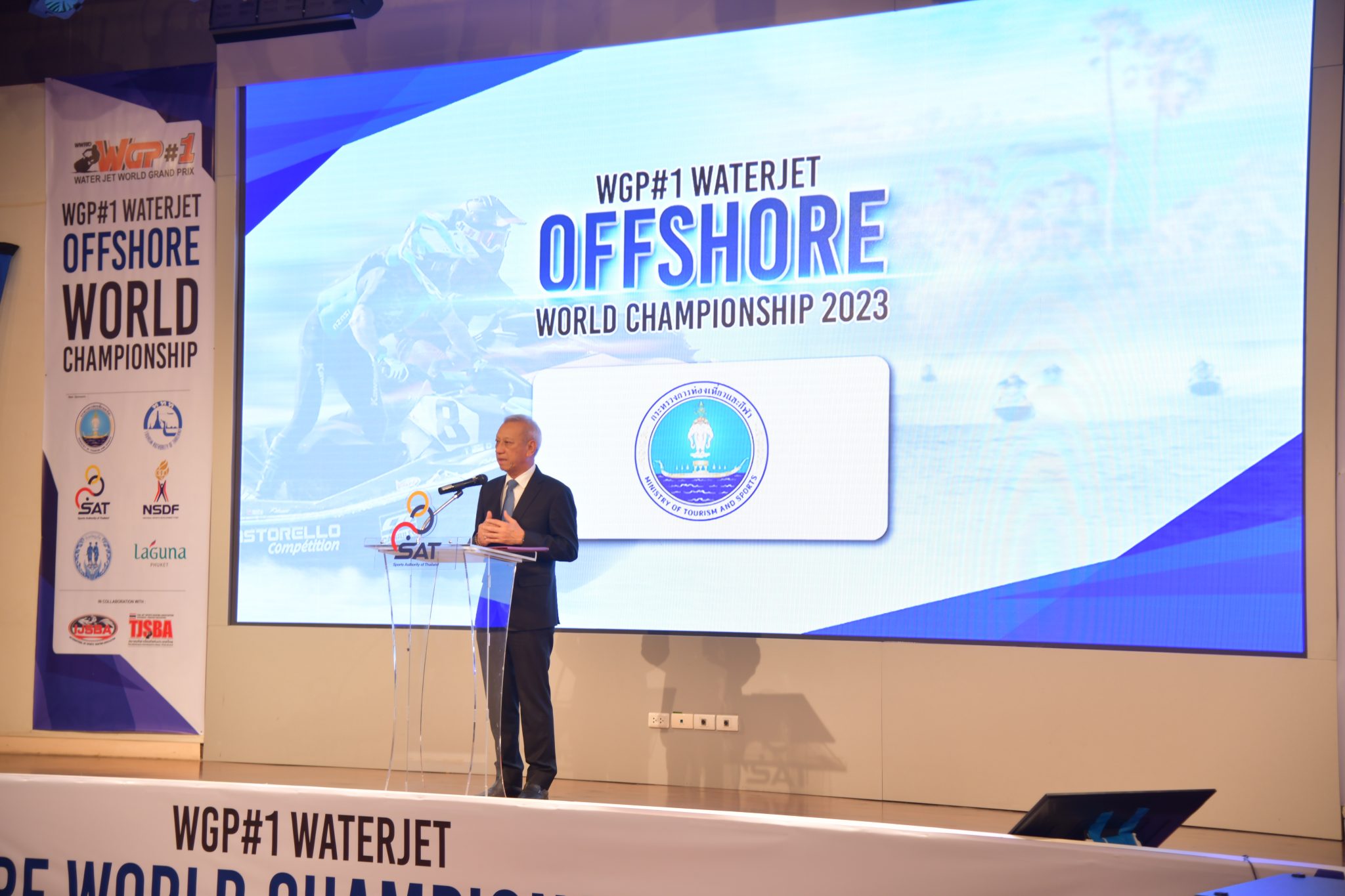 รมว.พิพัฒน์ เปิดเผยว่า "ทัวร์นาเม้นท์ WGP#1 Offshore World Championship 2023 - PHUKET หรือ การแข่งขันเจ็ตสกีระยะทางไกล นอกชายฝั่ง ชิงแชมป์โลก ณ ชายหาด เครือโรงแรม ลากูน่า ภูเก็ต จะเป็นโครงการกิจกรรมที่สร้างสรรค์ประโยชน์หลายด้าน ได้แก่ การสร้างหมุดหมายระดับโลกทางน้ำ หรือ "World Destination" ใช้กิจกรรมเสนอภาพที่สวยงามไปยังสื่อทั่วโลกเช่น EUROSPORT ที่มีฐานการรับชมกว่า 155 ล้านครัวเรือน และยังเป็นโครงการที่มีเป้าหมายด้าน "รักษ์โลก" ลดการปล่อยคาร์บอนไดออกไซด์ โดยโครงการจะมีส่วนเป็นผู้นำใช้เจ็ตสกีไฟฟ้า 100% แทนการใช้เครื่องยนต์ภายใน 3-5 ปี ซึ่งเป็นต้นแบบให้กับเรืออื่นๆด้วย"
