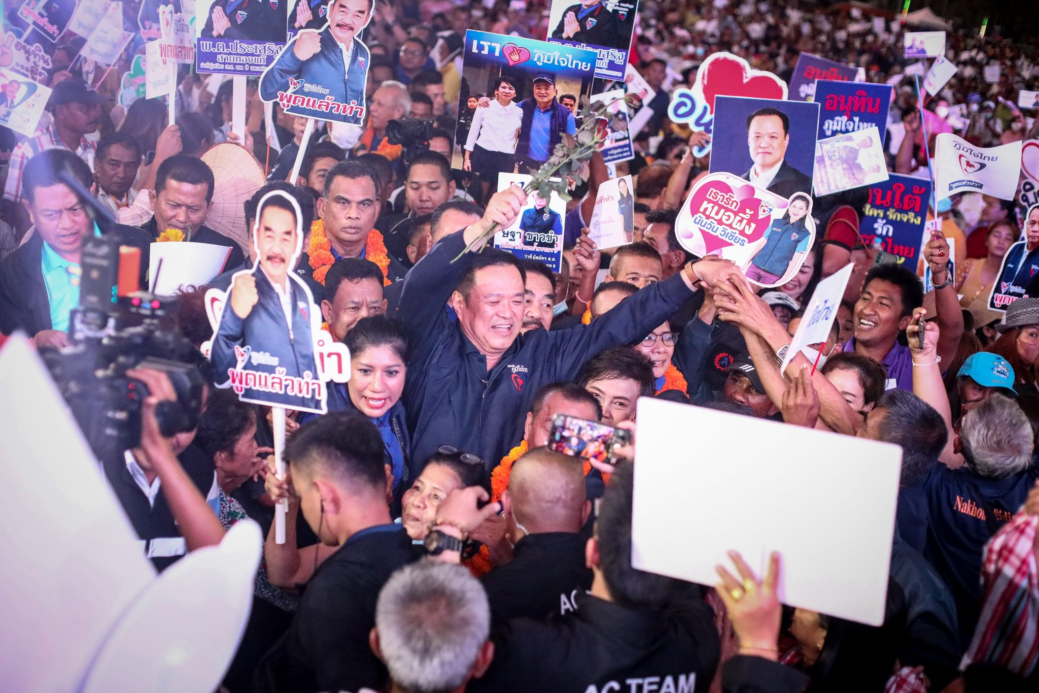 นายอนุทิน กล่าวว่า ครั้งที่แล้วพี่น้องเมืองคอนให้คะแนนพรรคภูมิใจไทยนับแสนคะแนน ถือเป็นน้ำใจ ที่มอบให้พรรคเรา และเราพยายามตอบแทนท่านอย่างเต็มที่ มาคราวนี้ เราทุ่มสุดตัวขอแจ้งเกิด ไม่ใช่แค่ตอกเสาเข็ม แต่ขอยกจังหวัดเลย วันที่ 7 พฤษภาคมนี้ จะเป็นวันเลือกตั้ง ท่านมีคนทำงานจริง ทำงานเป็น มาอยู่ตรงนี้แล้ว ขอโอกาสพวกเรารับใช้ท่าน 4 ปีที่ผ่านมา ถนนหนทาง เราพัฒนาขึ้น มีทางรถไฟเชื่อมต่ออย่างอย่างทั่วถึง การท่องเที่ยว เราต้องการยกระดับขึ้นไปอีก นครศรีธรรมราชต้องเป็นเป้าหมายให้คนทั้งโลกมาเยือน