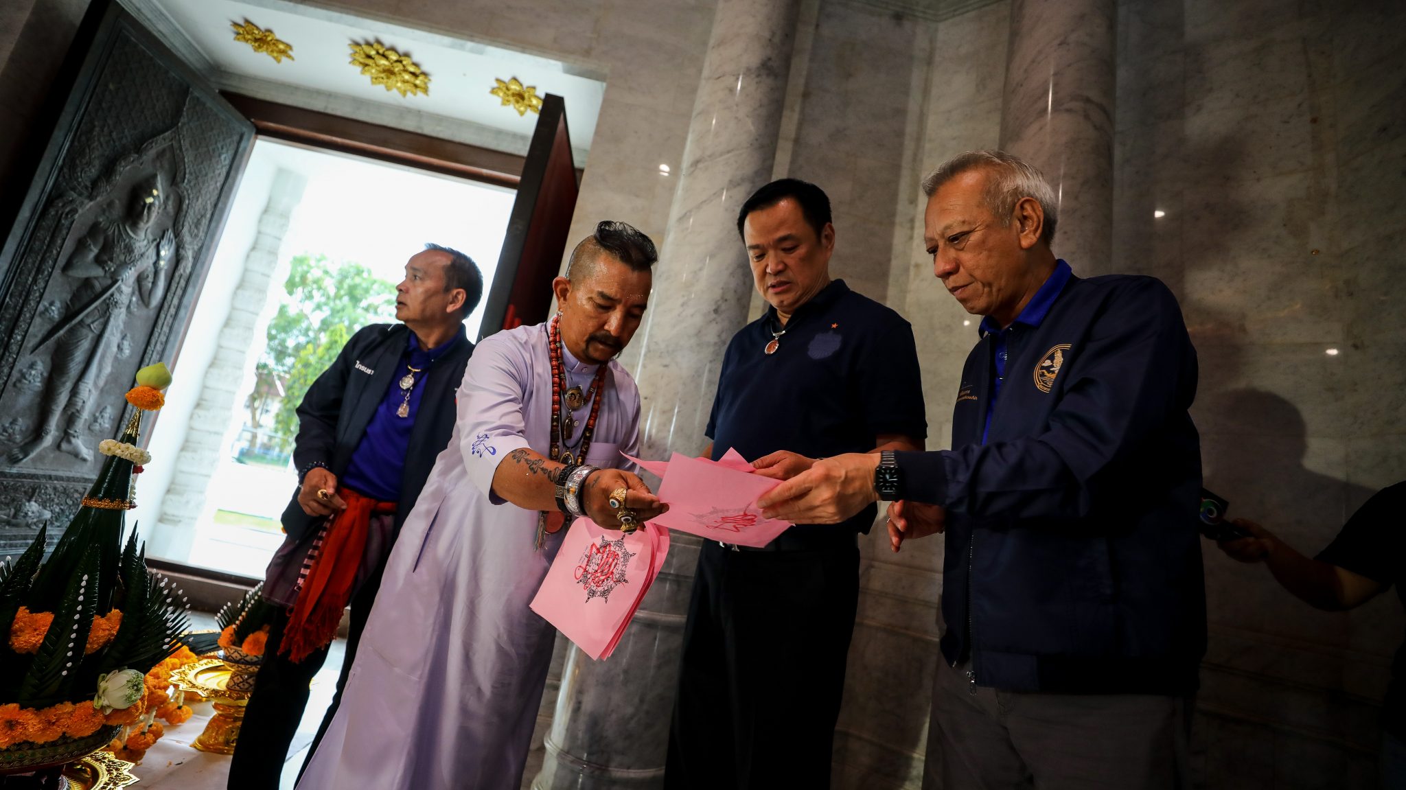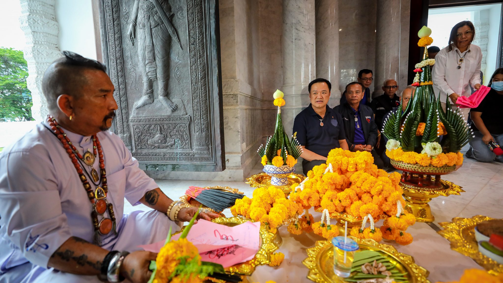 โดยก่อนหน้านี้ นายอนุทิน และคณะได้เข้ากราบสักการะศาลหลักเมือง และองค์จตุคามรามเทพ ทั้งนี้ ได้ทำพิธีขอพรจตุคามเพื่อเพิ่มวาสนาบารมีด้วย โดยนายอนุทิน และนายพิพัฒน์ ได้เขียนขอพรในการทำพิธี ซึ่งนายอนุทิน เปิดเผยภายหลังขอพรต่อศาลหลักเมืองนครศรีธรรมมราช ว่า ขอให้ประเทศไทยเจริญรุ่งเรืองสงบสุขผู้คนรักกันรักขอให้อะไรที่เราปรารถนาดีต่อบ้านเมือง ก็ให้เราประสบความสำเร็จทุกอย่าง